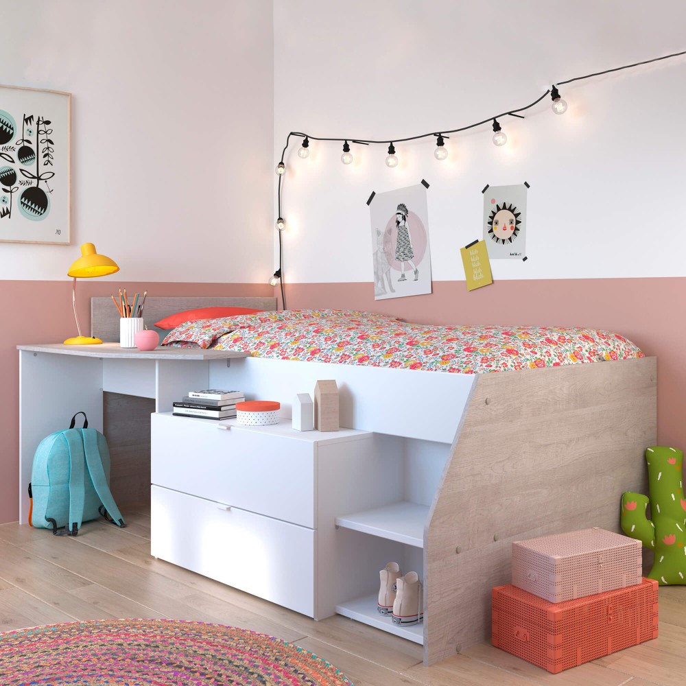 MILKY bed with 2 drawers and 1 desk - Camas Altas