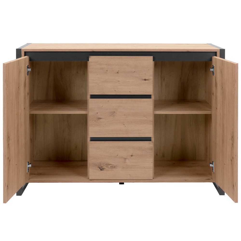 Dê um toque contemporâneo e funcional à sua casa com o aparador DENVER com 2 portas e 3 gavetas.