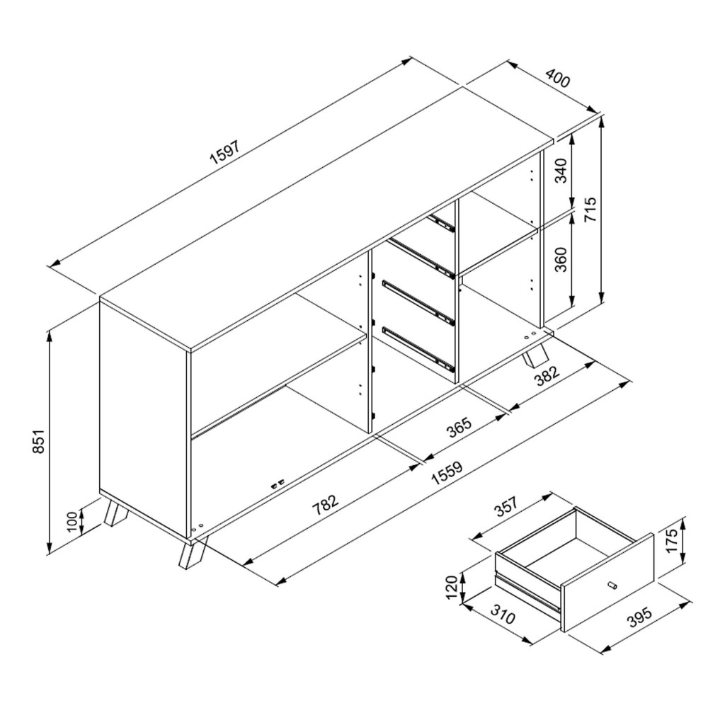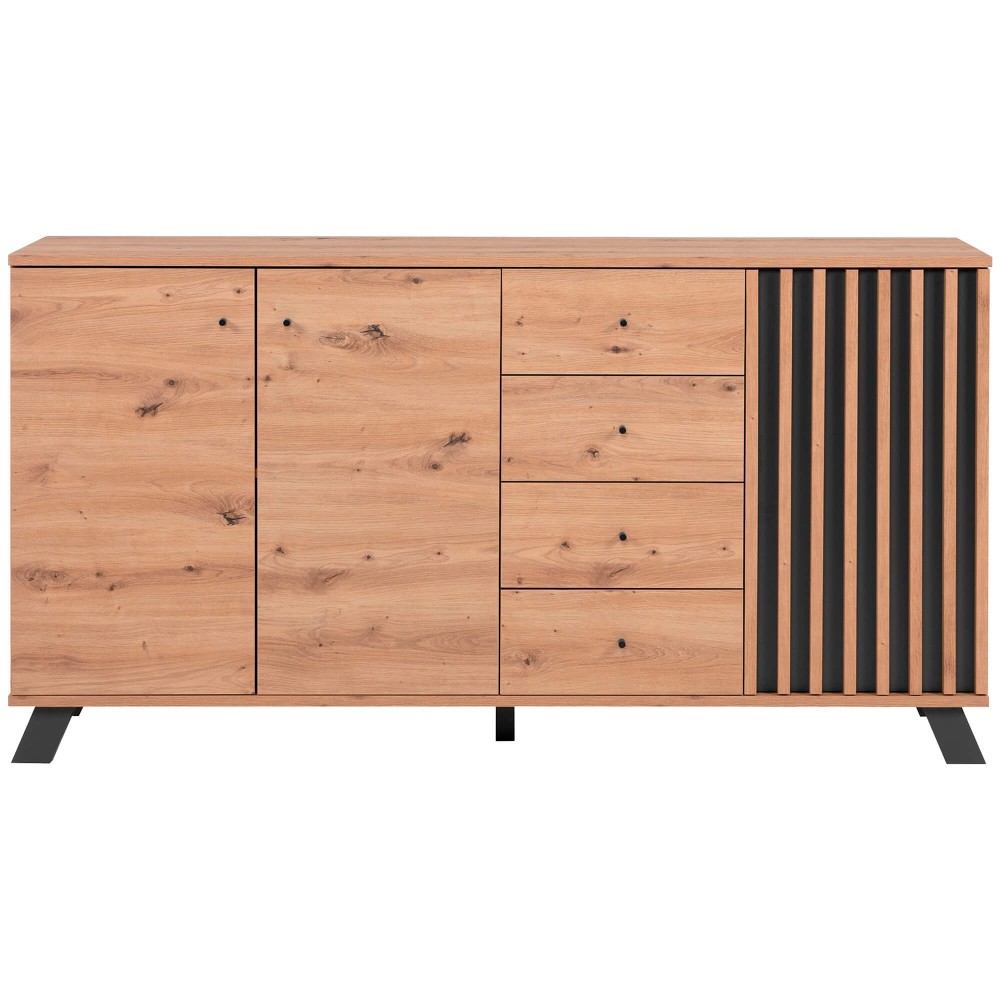 O Aparador MEDAN com 3 portas e 4 gavetas é a síntese entre funcionalidade e design contemporâneo. A estrutura sólida com linhas limpas garante equilíbrio visual, enquanto o detalhe lateral ripado reforça a personalidade do móvel e valoriza o espaço com um toque moderno e acolhedor.