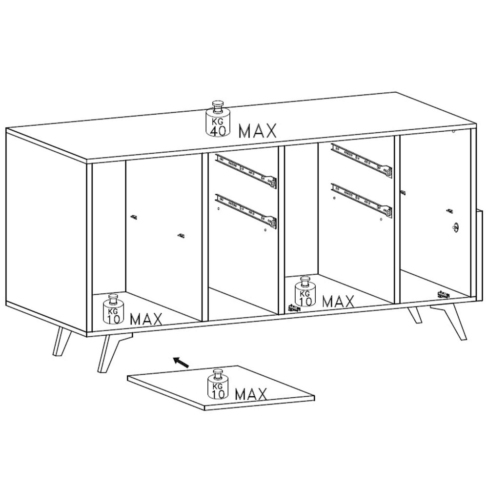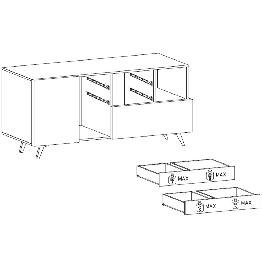 O Aparador MONACO com 2 portas e 2 gavetas combina frentes em branco brilho com detalhes em carvalho claro, trazendo um visual contemporâneo que encaixa facilmente em salas modernas. A estrutura em aglomerado de madeira garante estabilidade, enquanto as portas e gavetas oferecem compartimentos práticos para quem precisa organizar a casa sem ocupar demasiado espaço.