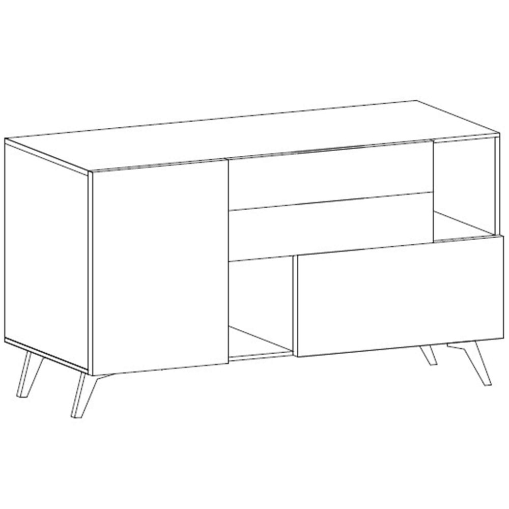 O Aparador MONACO com 2 portas e 2 gavetas combina frentes em branco brilho com detalhes em carvalho claro, trazendo um visual contemporâneo que encaixa facilmente em salas modernas. A estrutura em aglomerado de madeira garante estabilidade, enquanto as portas e gavetas oferecem compartimentos práticos para quem precisa organizar a casa sem ocupar demasiado espaço.