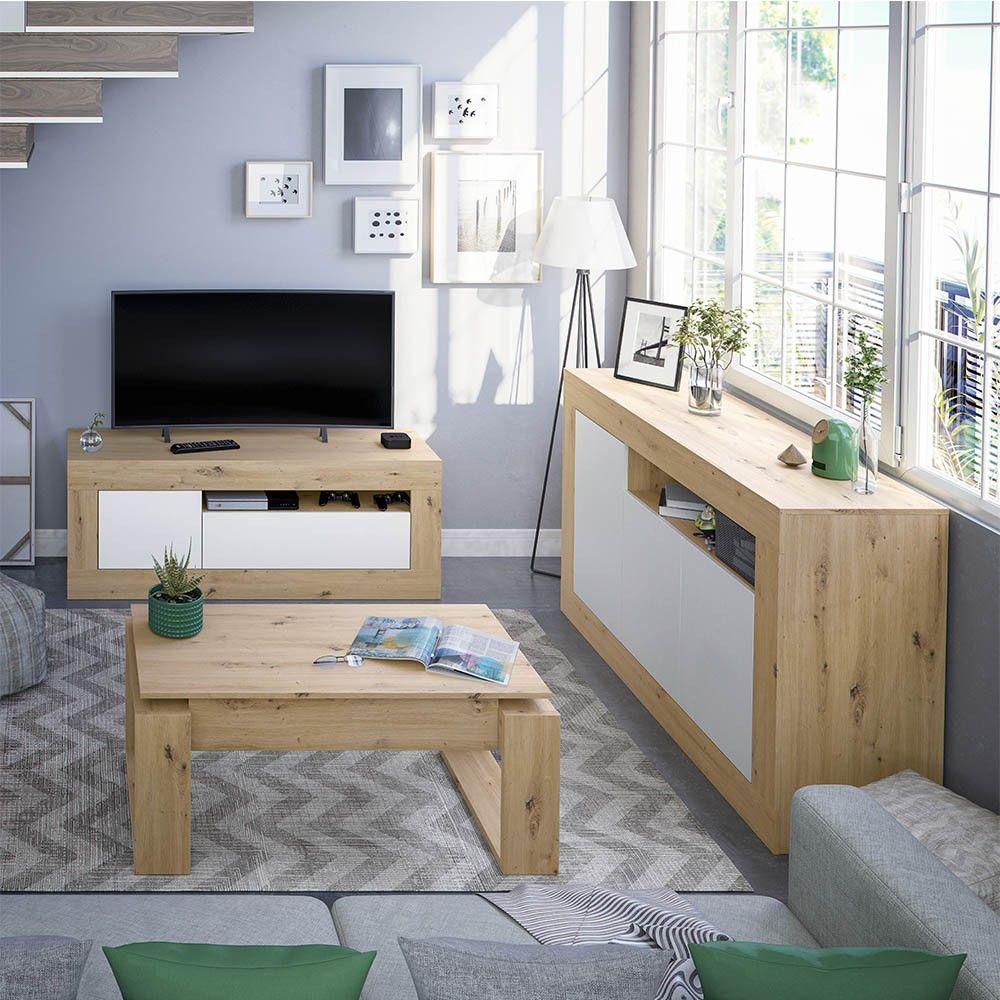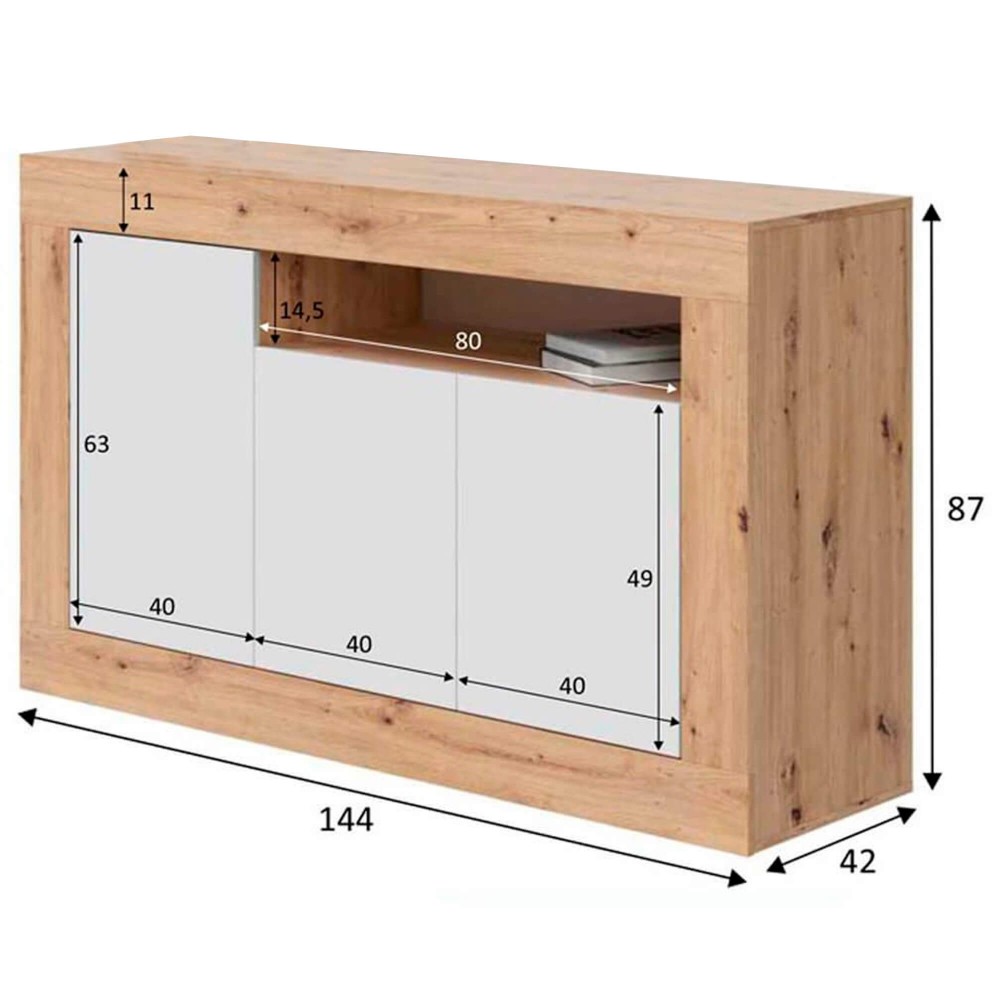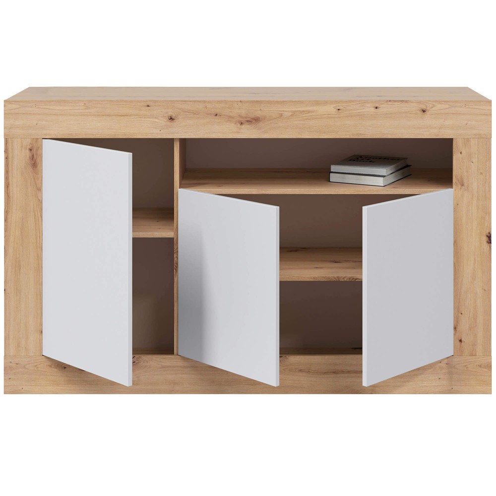 Ideal para quem valoriza móveis com presença e utilidade, o aparador oferece três portas com amplo espaço interior e prateleiras ajustáveis que facilitam a organização de loiças, livros ou acessórios domésticos.