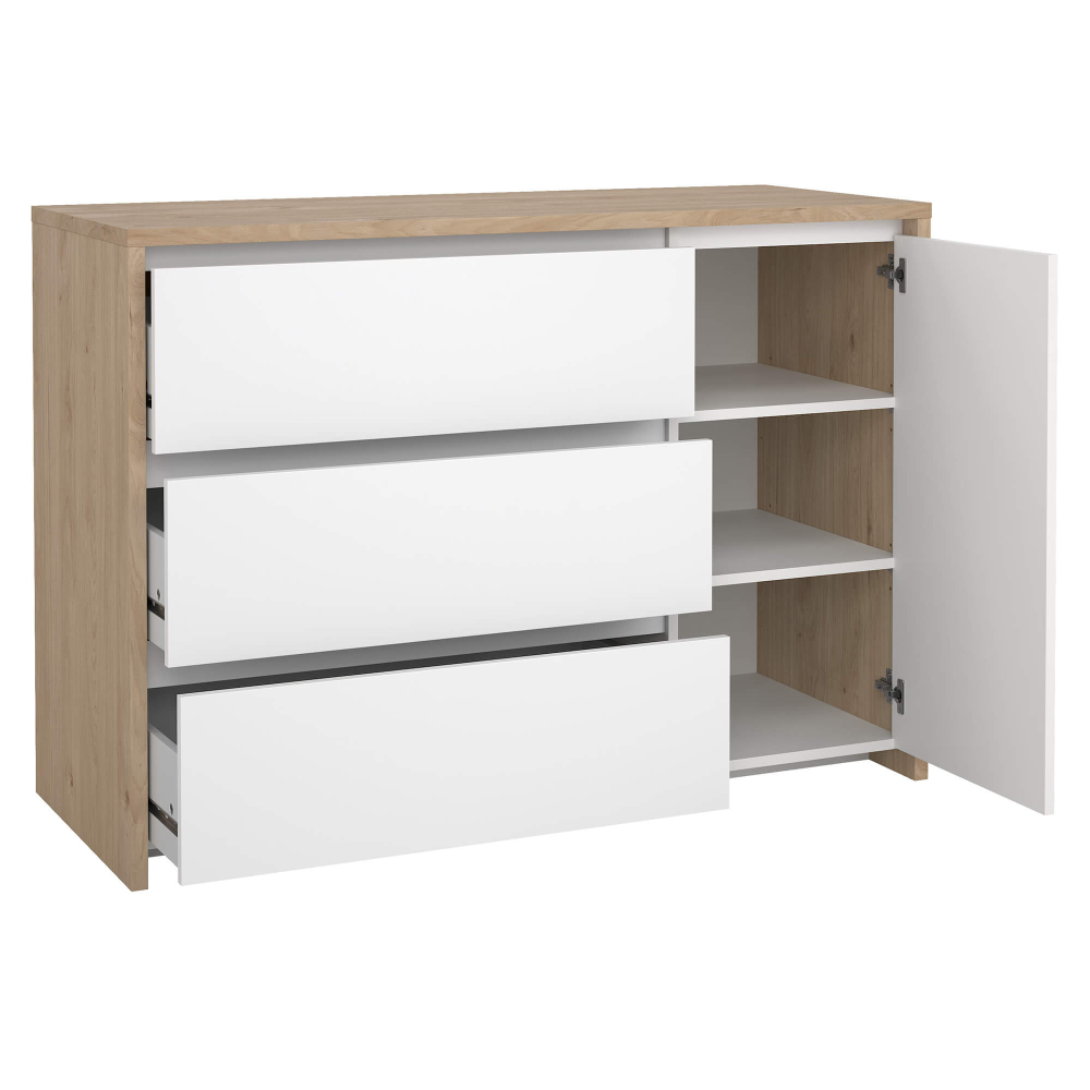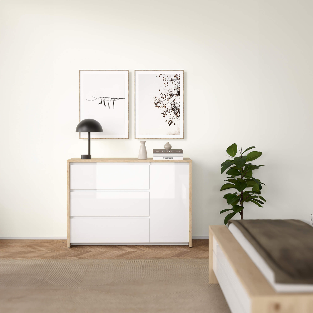 Aparador NEXT: arrumação elegante e moderna com 3 gavetas e 1 porta para a sua sala.