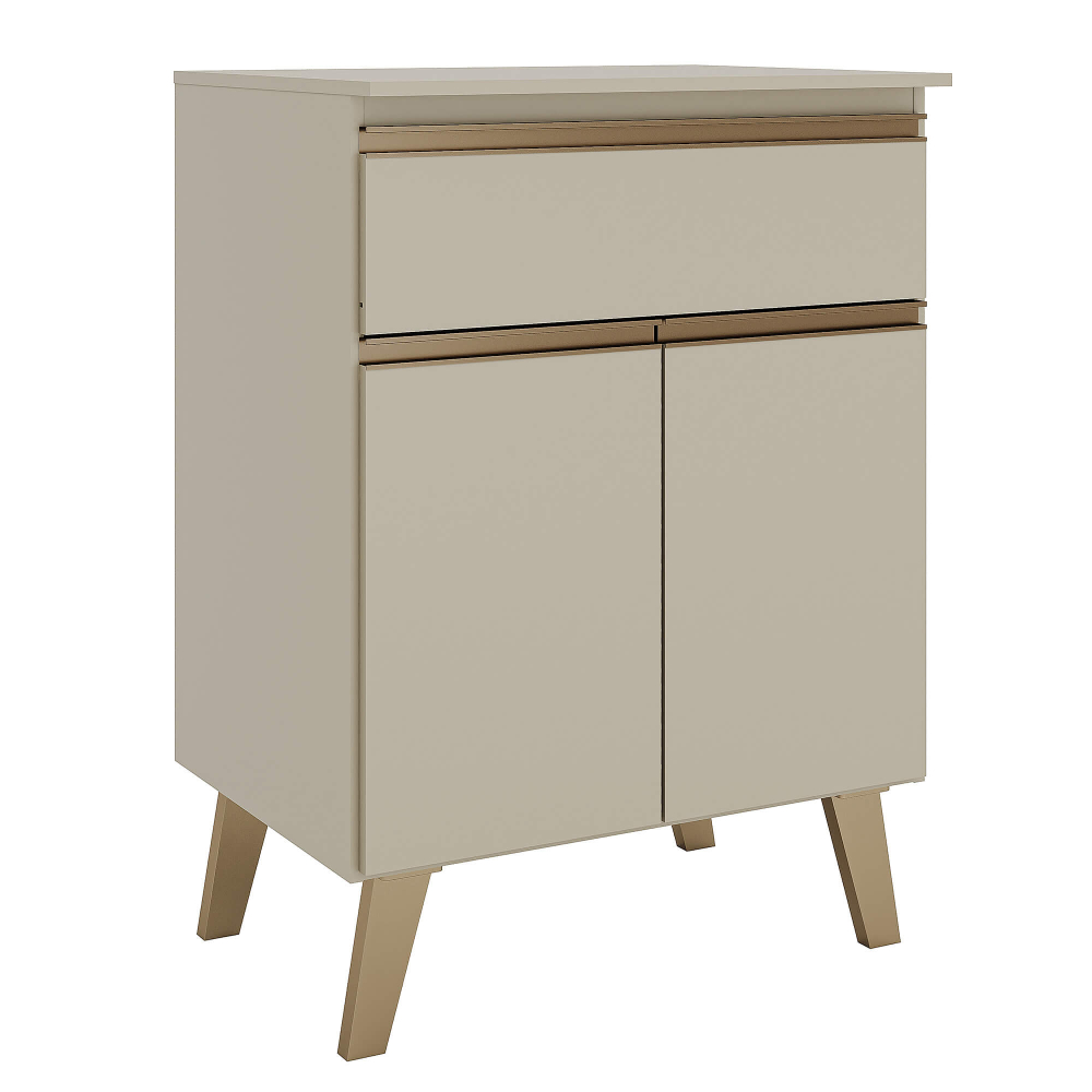 Bancada KENAN: 2 portas, 1 gaveta, acabamento UV resistente e interior cor linho.