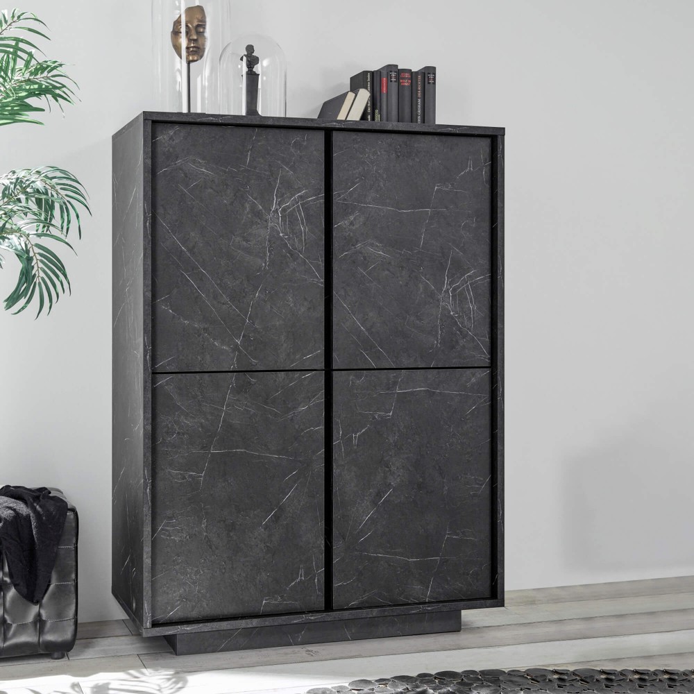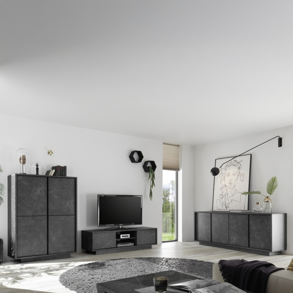 Elemento bar CARRARA: elegância em efeito mármore e arrumação com 4 portas espaçosas.