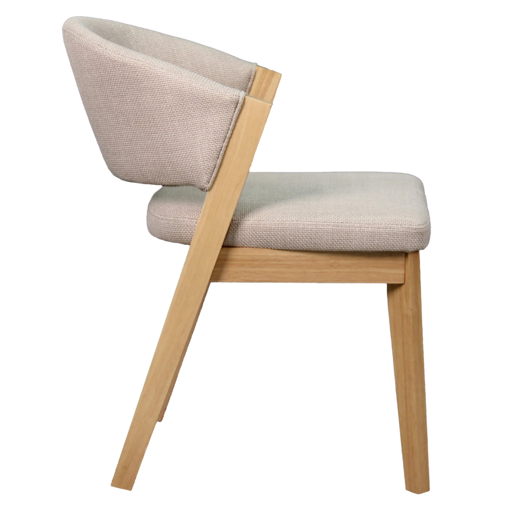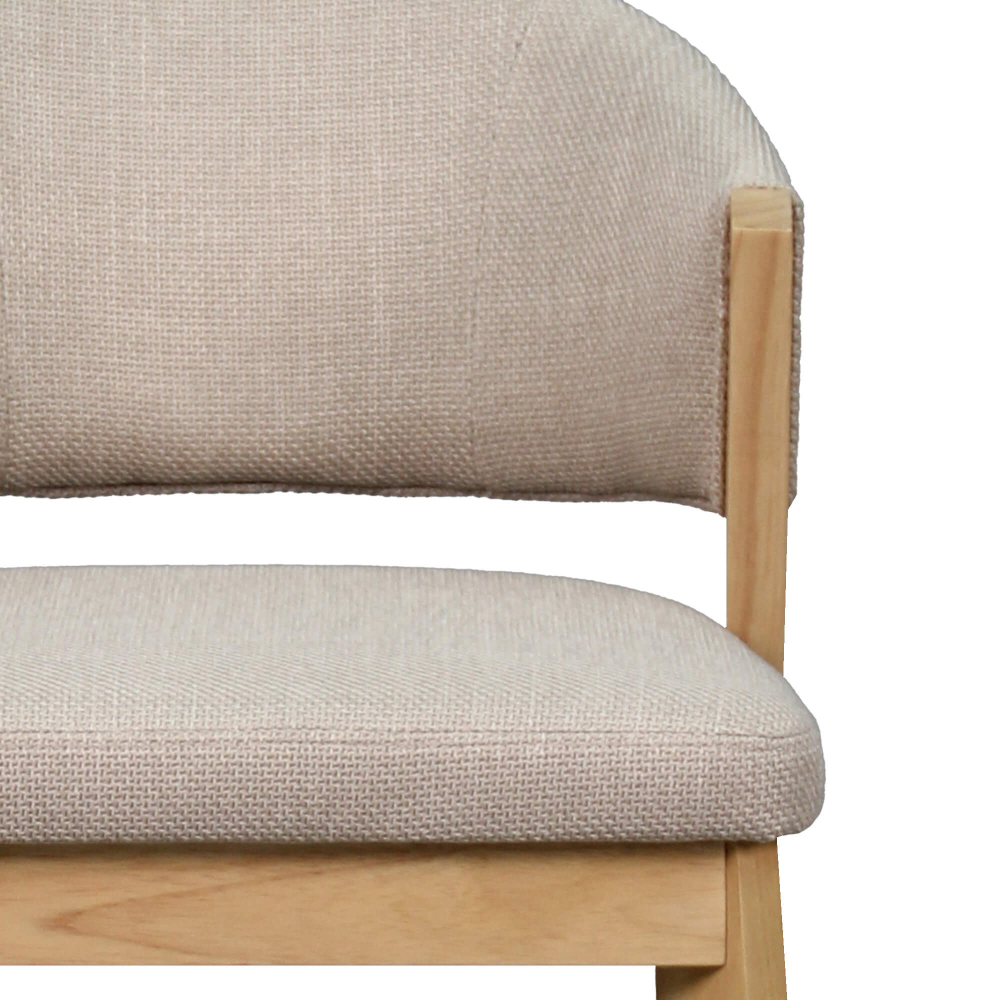 Com assento e encosto em espuma revestidos em tecido macio, esta cadeira oferece suporte e aconchego em cada utilização. A estrutura em contraplacado e os pés em madeira de borracha asseguram robustez e estabilidade, suportando até 120 kg. O design curvo e o tom neutro do estofamento tornam a cadeira LUCY uma peça moderna, versátil e fácil de combinar com qualquer decoração.