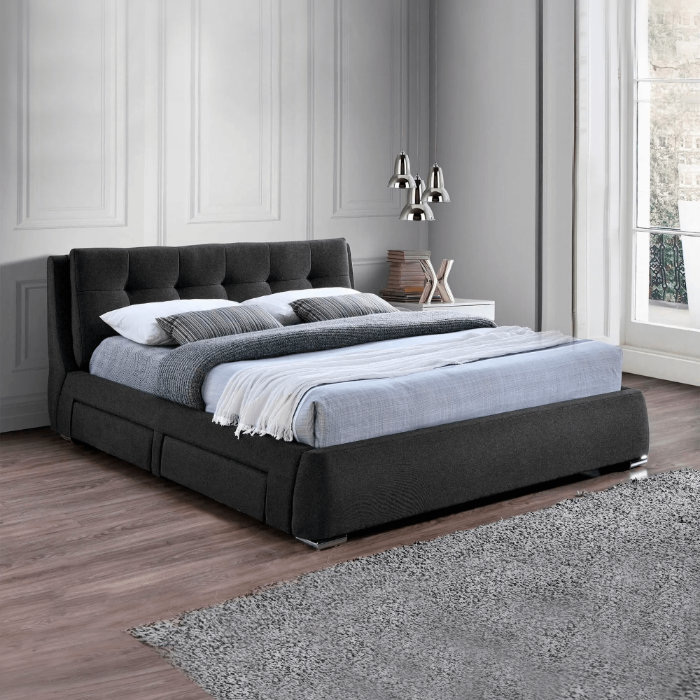 Cama de casal ANTONIO, disponível em dois tipos de tecidos, com 4 gavetas e cabeceira em capitonê!