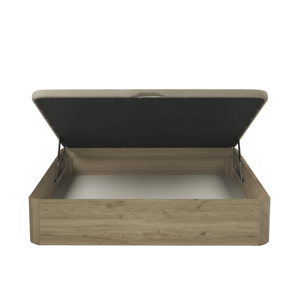 O sommier de casal CASINO BOX destaca-se pela sua estrutura robusta e funcionalidade inteligente. Equipado com sistema de abertura frontal com amortecedores, permite aceder facilmente ao espaço interior de arrumação. As pegas em madeira facilitam o manuseamento e o tampo eleva-se suavemente para revelar um compartimento espaçoso. Compatível com colchões de altura igual ou superior a 16 cm que não sejam exclusivamente de espuma.
