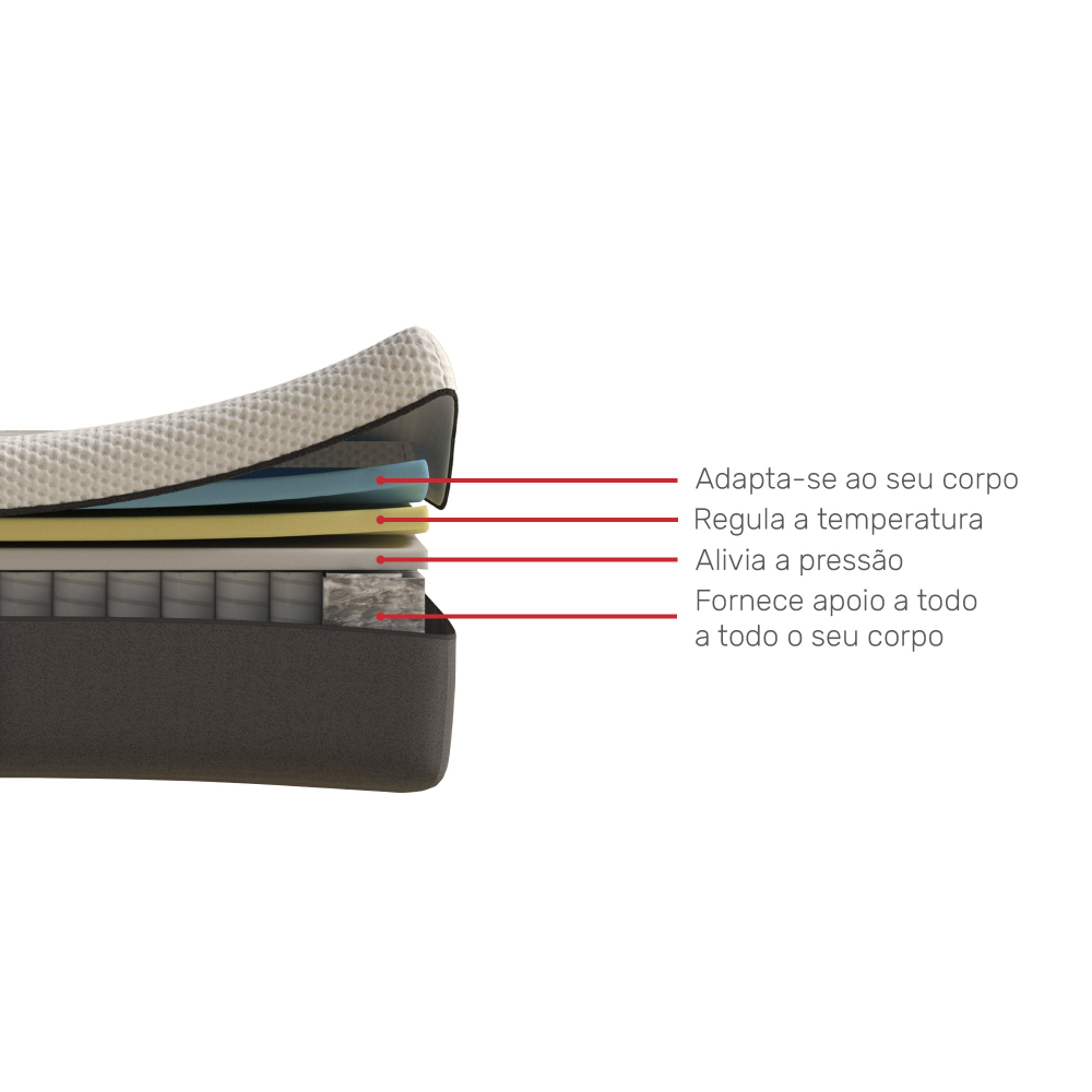 O colchão EMMA ORIGINAL HYBRID foi concebido para oferecer o equilíbrio perfeito entre conforto, suporte e durabilidade. Composto por 6 camadas inovadoras, este colchão adapta-se instantaneamente ao formato do corpo graças à espuma de memória Halo, proporcionando um apoio firme e ergonómico para as costas. O resultado é um descanso profundo e reparador, noite após noite.