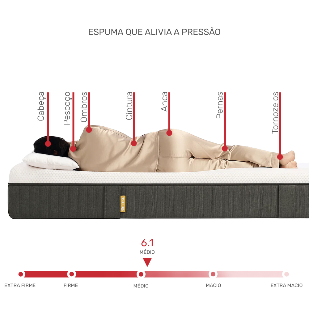 Colchão EMMA ORIGINAL HYBRID: conforto adaptável e suporte duradouro para noites perfeitas.