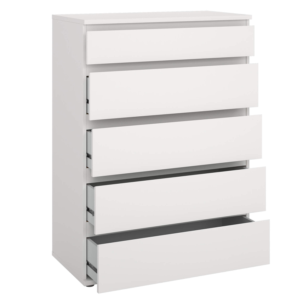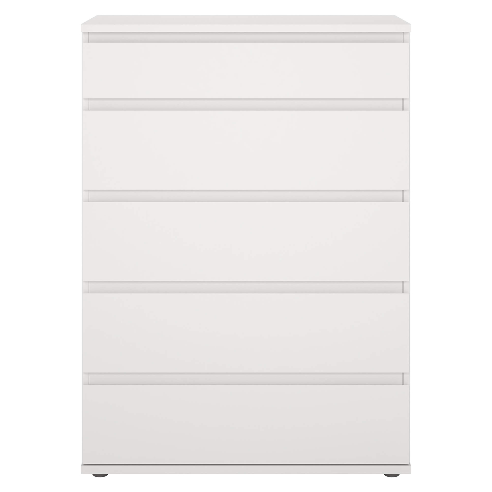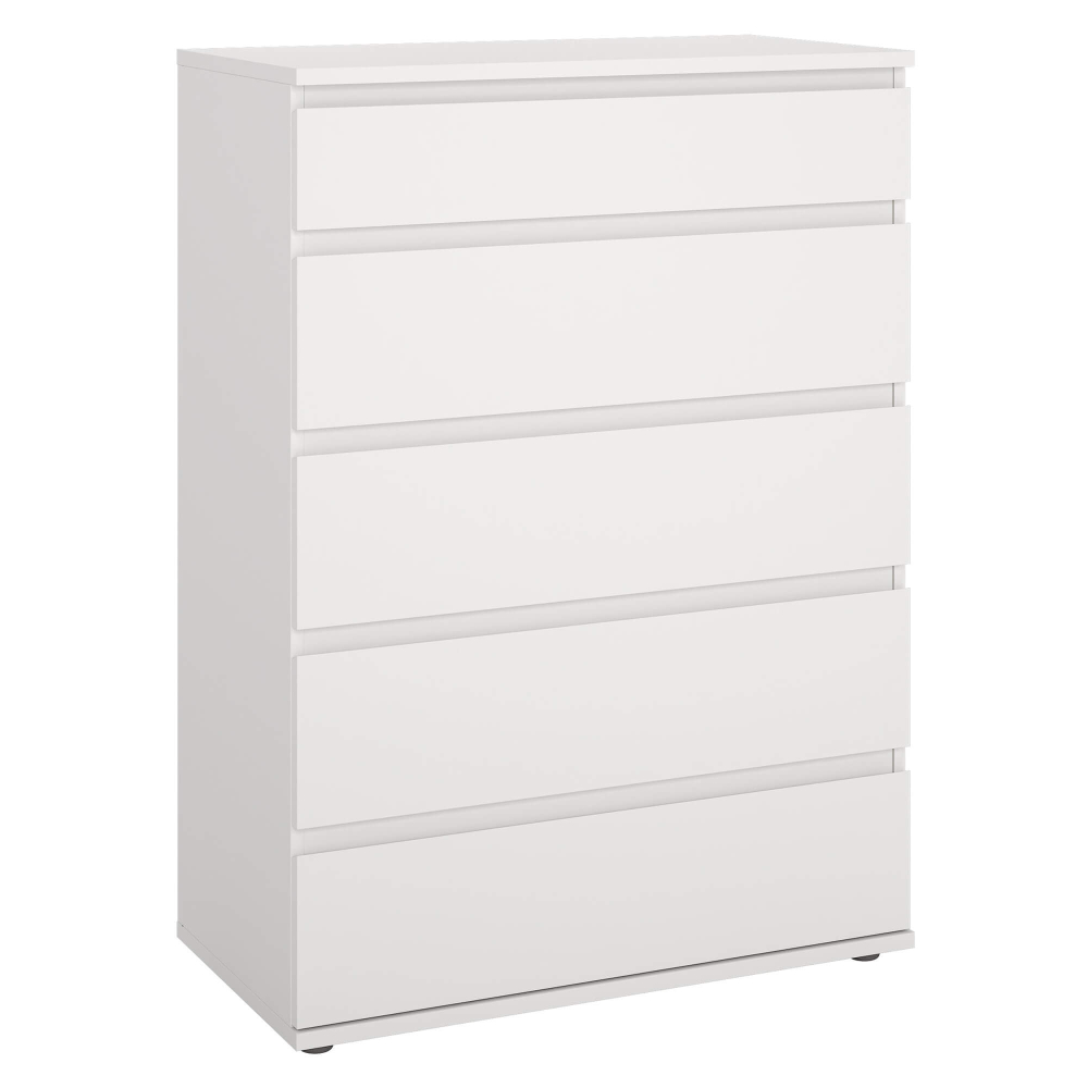 Cómoda alta NEW MATRIX II com 5 gavetas práticas e design moderno em branco.