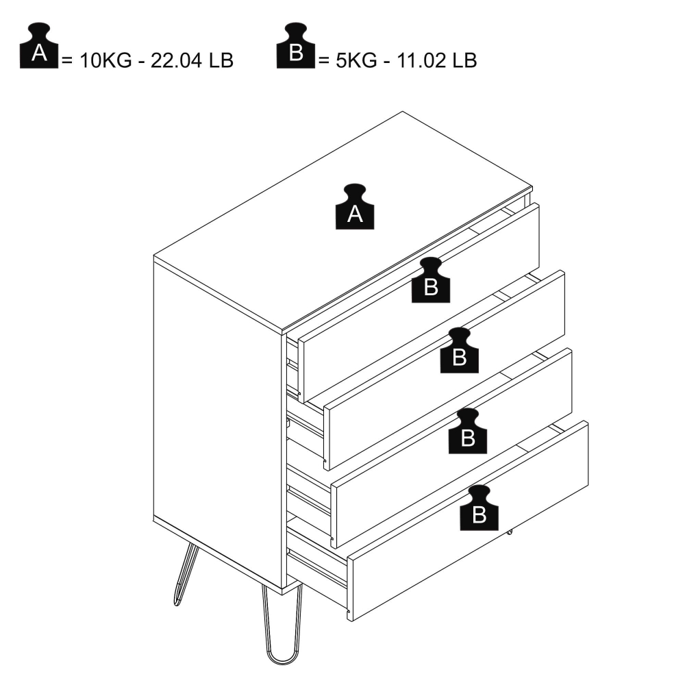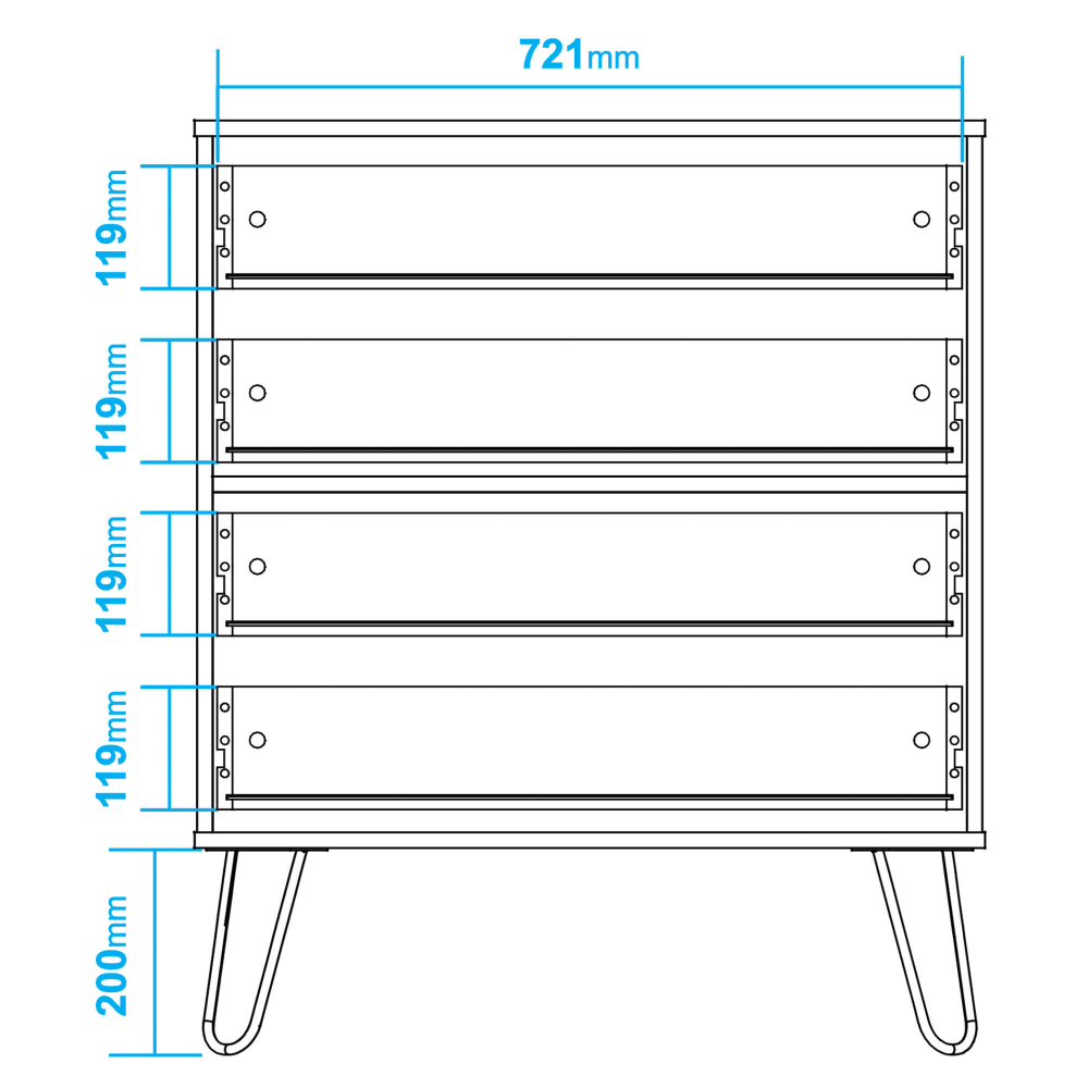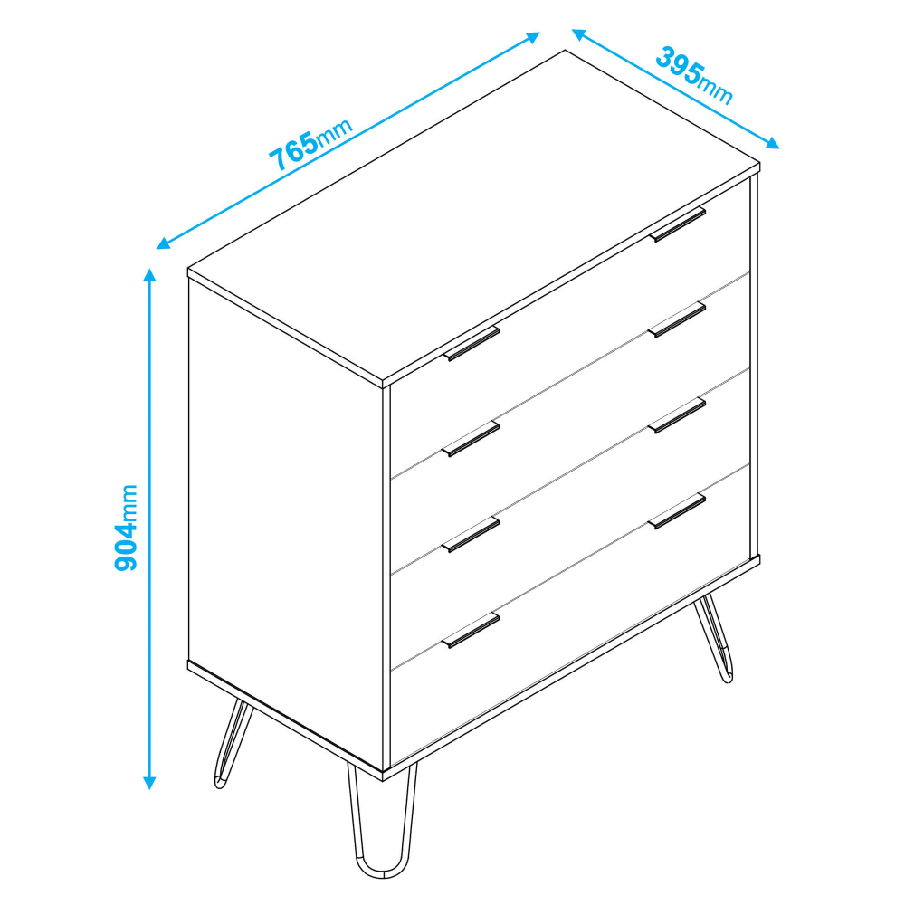 Cómoda CASSIE com 4 gavetas: design moderno, arrumação prática e estilo versátil.