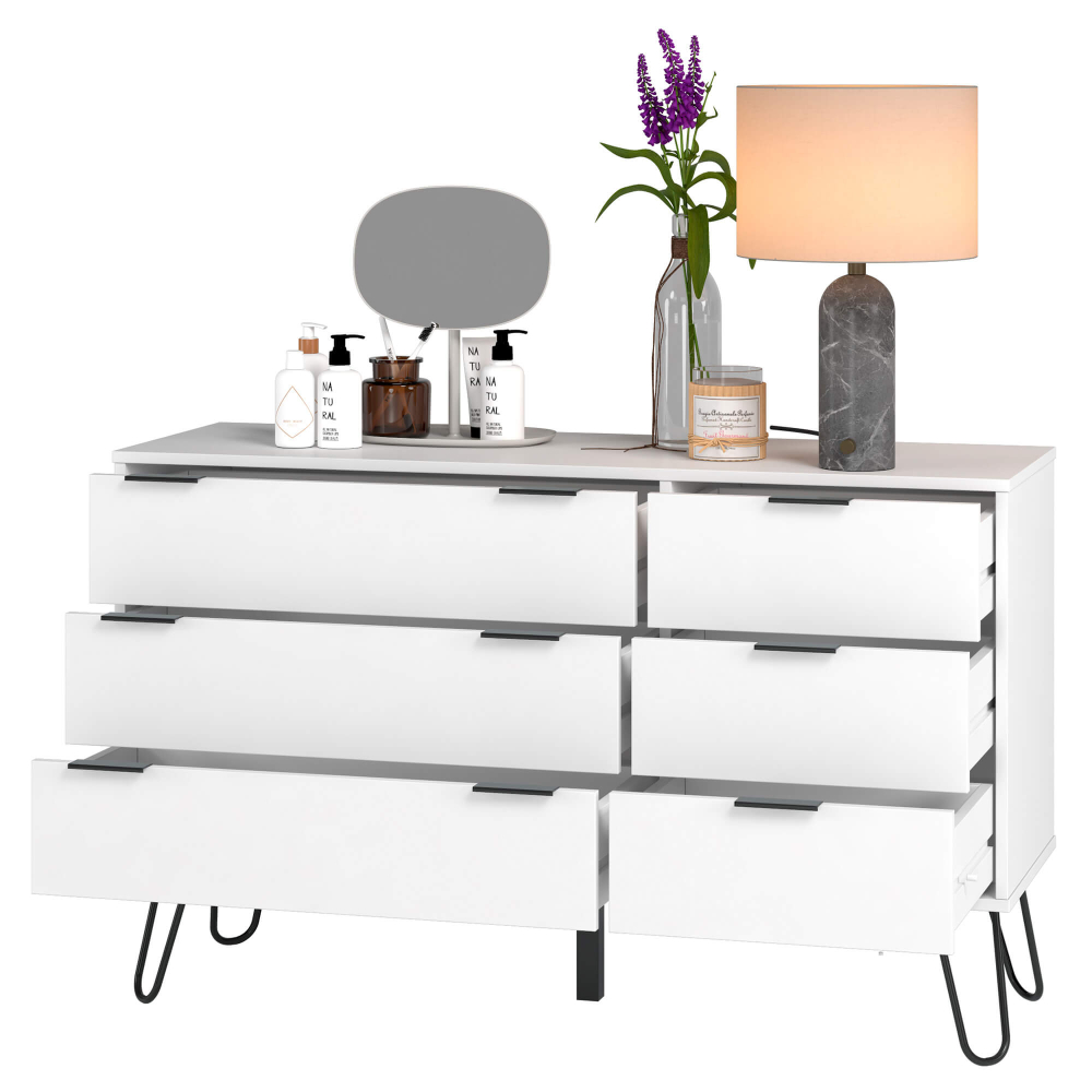 Escolha a cómoda CASSIE com 6 gavetas e transforme o seu espaço num ambiente organizado, moderno e cheio de estilo.