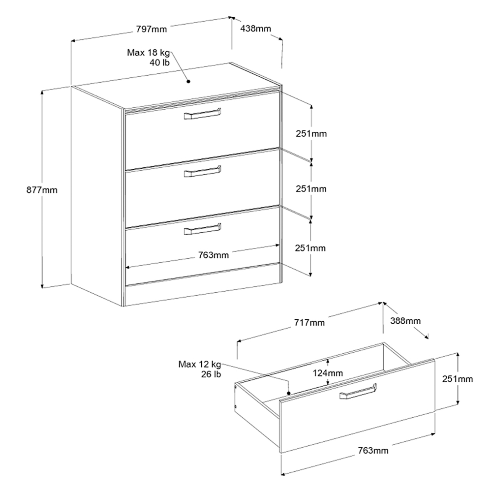 Este modelo adapta-se facilmente a ambientes juvenis ou adultos, graças ao design simples e intemporal. As gavetas deslizam suavemente, permitindo acesso rápido e cómodo ao interior, enquanto o tampo superior pode ser usado para decoração ou itens essenciais.