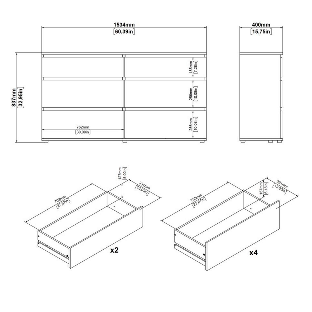 A cómoda NEW MATRIX com 6 gavetas, de linhas direitas onde predomina a simplicidade é uma peça ideal para criar um ambiente clean, elegante e minimalista.