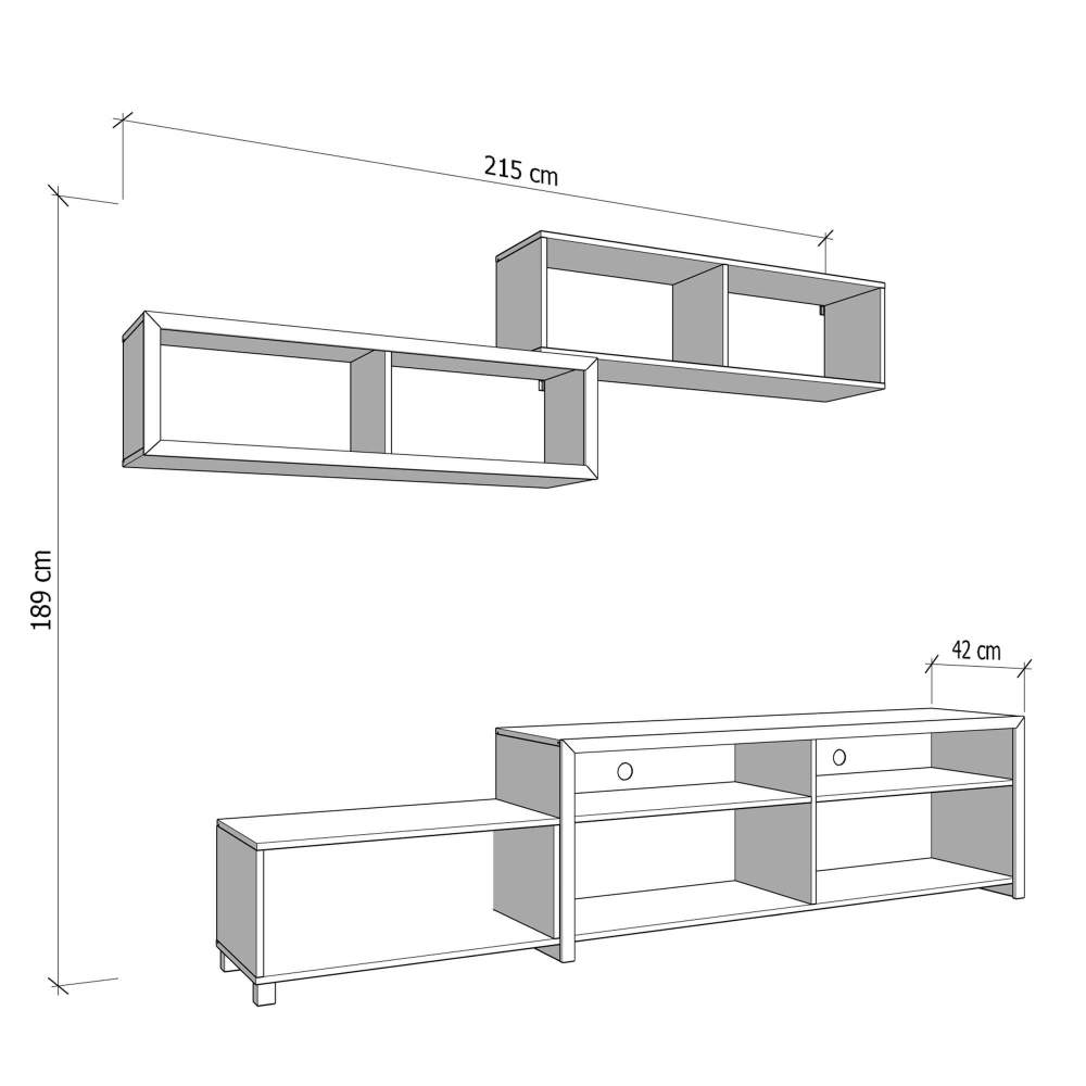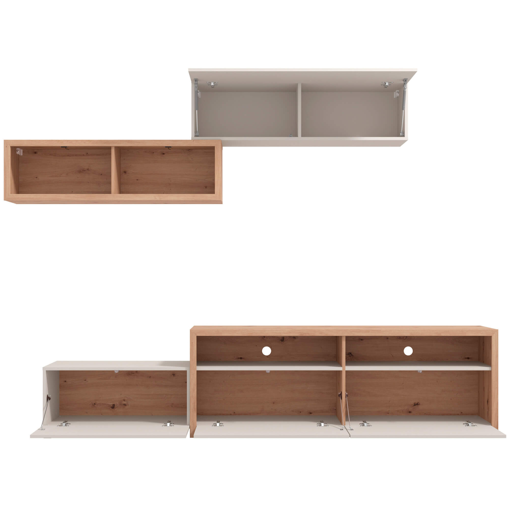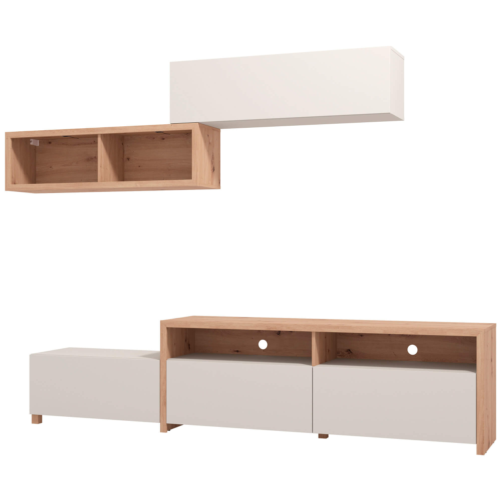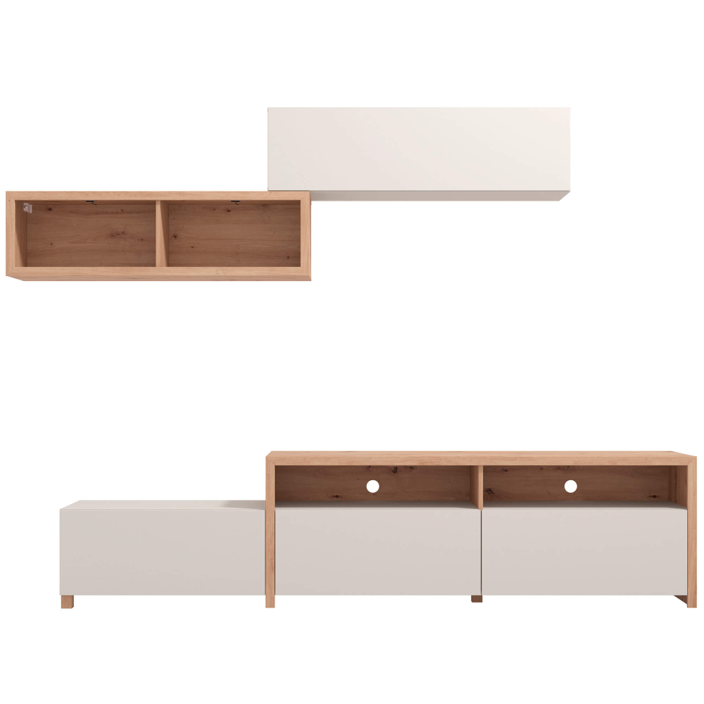 Ideal para criar uma parede de destaque na sua sala, a estante TV AUREL permite integrar televisão, equipamentos multimédia e objetos decorativos com elegância. Os compartimentos ocultos oferecem arrumação prática, enquanto as prateleiras abertas mantêm o ambiente leve e organizado. Um móvel versátil e completo que responde às exigências do dia a dia.