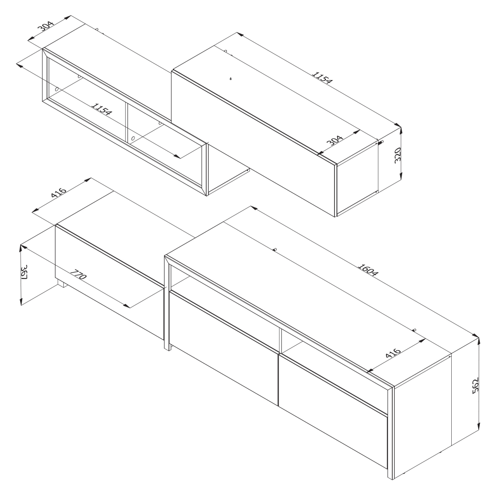 A estante TV AUREL apresenta um design contemporâneo e modular que combina funcionalidade com um visual sofisticado. Com estrutura em MDF, inclui 9 compartimentos de arrumação, 4 portas basculantes, 1 prateleira externa, 1 gaveta e furações no tampo para facilitar a passagem de cabos. Os puxadores metálicos e os pés com sistema de nivelação garantem estabilidade e durabilidade, mesmo em pisos irregulares.