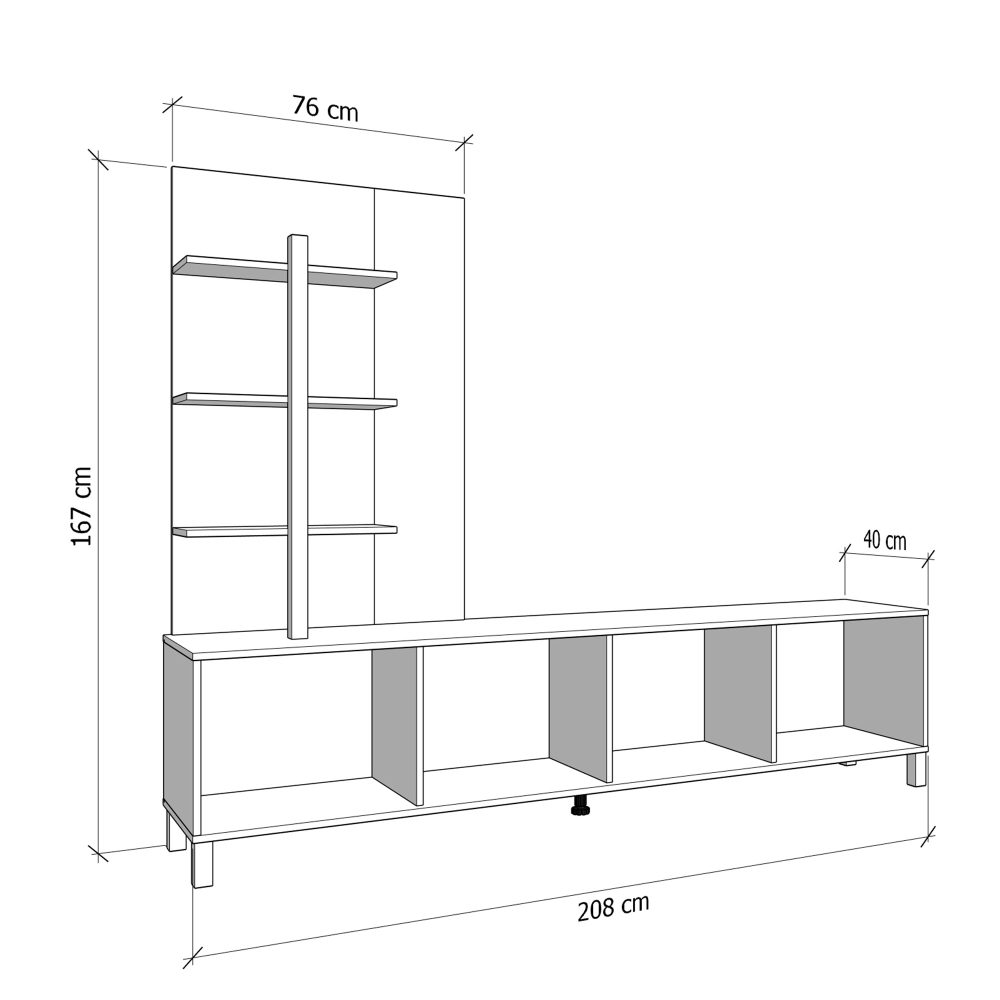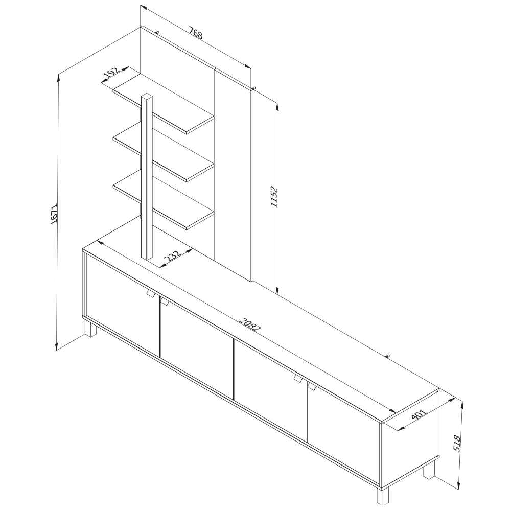 Perfeito para dar destaque ao televisor e criar uma composição elegante na parede, este móvel valoriza qualquer sala com o seu visual arrojado. É a escolha certa para quem quer mais do que um simples suporte de TV — quer uma peça de decoração com impacto.