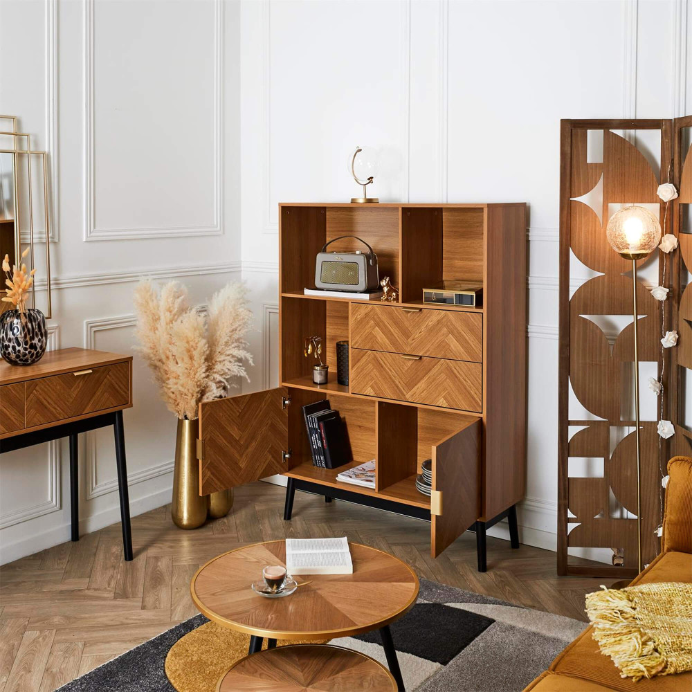 Já imaginou um espaço onde cada detalhe transmite sofisticação e organização? Onde os objetos que contam a sua história encontram um lugar de destaque? A Estante FELIX foi criada para quem valoriza tanto a estética quanto a funcionalidade. Com um design elegante e acabamento em madeira com padrão geométrico, esta peça torna-se o centro das atenções, elevando a decoração do seu ambiente.