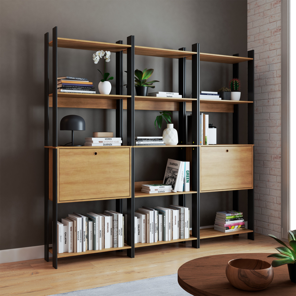 A estante MANDY permite criar composições personalizadas, podendo ser combinada com outras unidades iguais para formar uma biblioteca completa ou uma parede de arrumação contínua. Esta versatilidade torna-a ideal para quem deseja ampliar o espaço de exposição e manter uma estética uniforme e harmoniosa em casa ou no escritório.