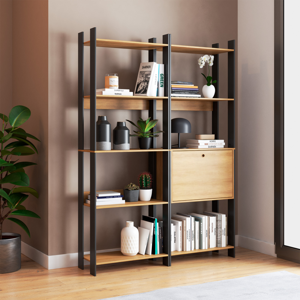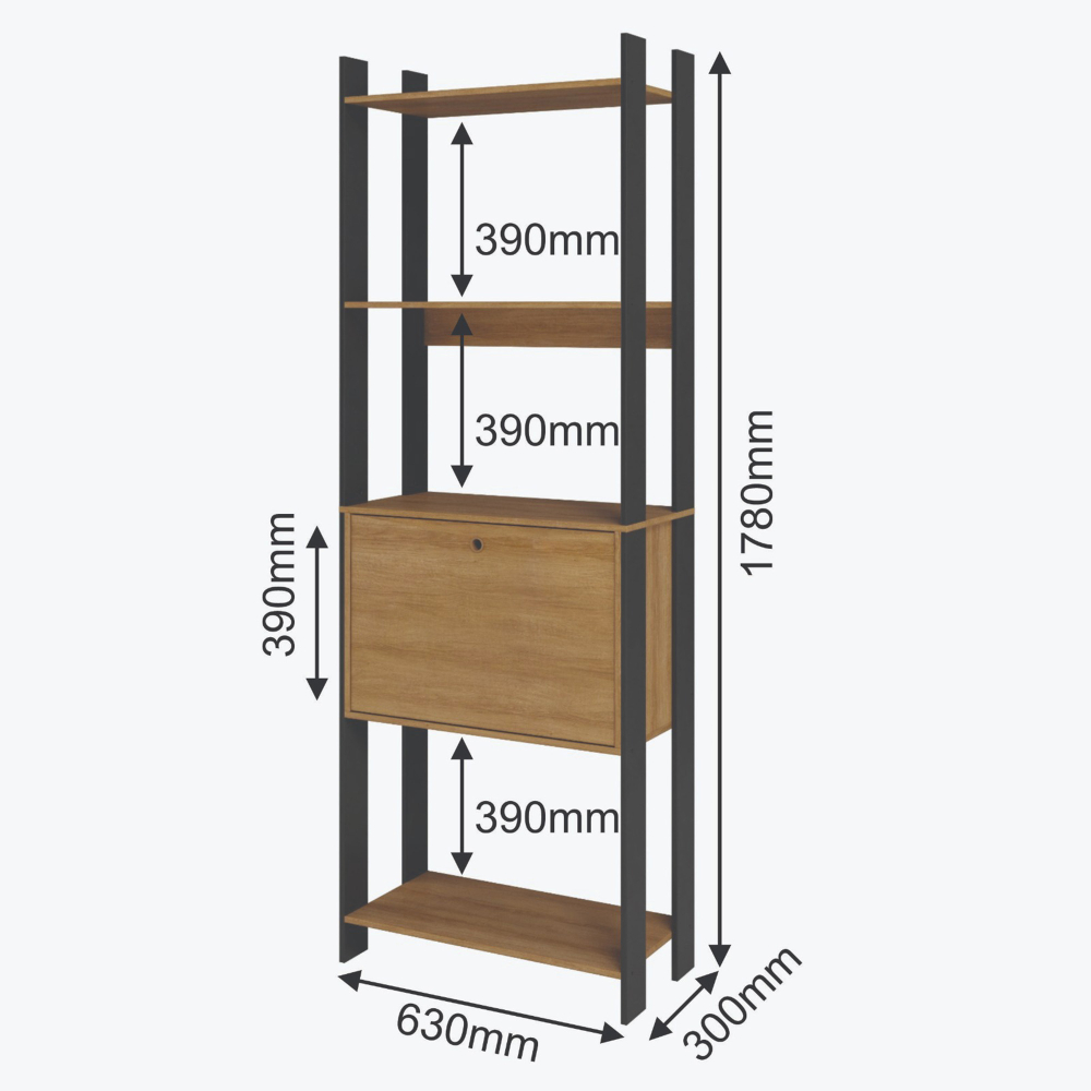 Transforme o seu espaço com a estante MANDY com 1 porta e adicione um toque industrial e elegante à sua decoração.