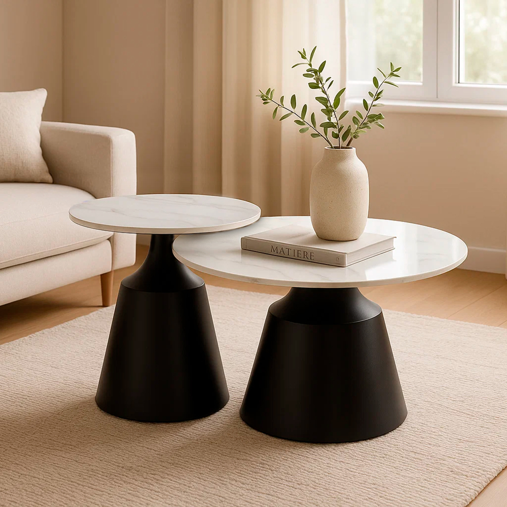 O conjunto 2 mesas de centro LAUREN é a solução ideal para quem procura aliar funcionalidade e estética no mesmo elemento. Muitas salas enfrentam o problema de falta de superfície de apoio — por exemplo, quando uma única mesa de centro não é suficiente ou ocupa demasiado espaço. Com este conjunto 2 mesas de centro, o consumidor ganha total versatilidade, podendo aproximar, afastar ou sobrepor as mesas conforme as necessidades do dia-a-dia.