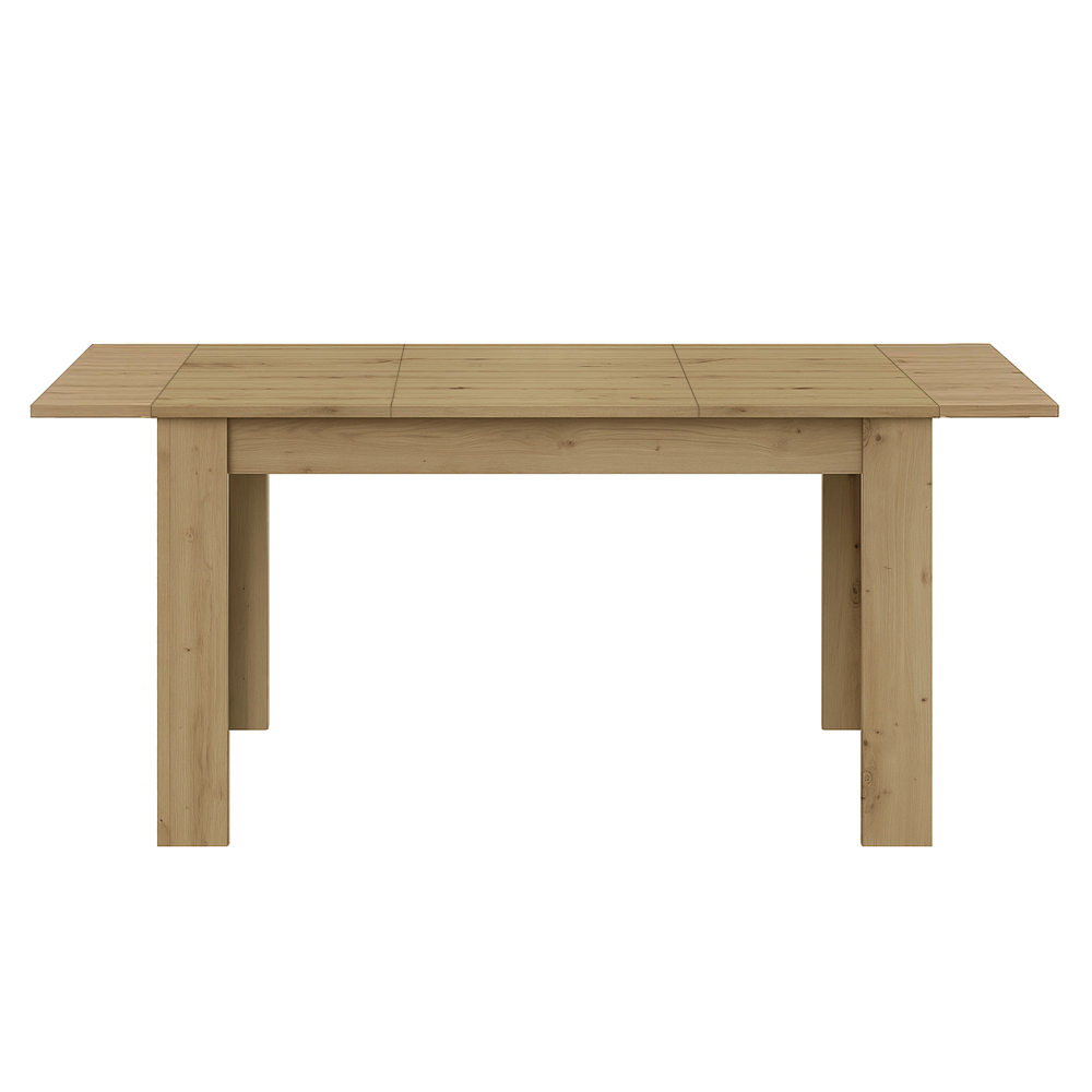 Com estrutura em painel de partículas e acabamento em melamina, a mesa extensível BARCELONA alia resistência e elegância. O seu sistema de abertura com guias deslizantes e fechos metálicos garante estabilidade e durabilidade, enquanto os cantos em PVC protegem contra impactos do uso diário. A madeira com espessura entre 15 e 22 mm e os calços em ABS antirruído reforçam a robustez da mesa, proporcionando uma utilização silenciosa e prática. O design em tom natural adapta-se a diferentes estilos de decoração, tornando esta mesa uma peça funcional e versátil para qualquer ambiente.
