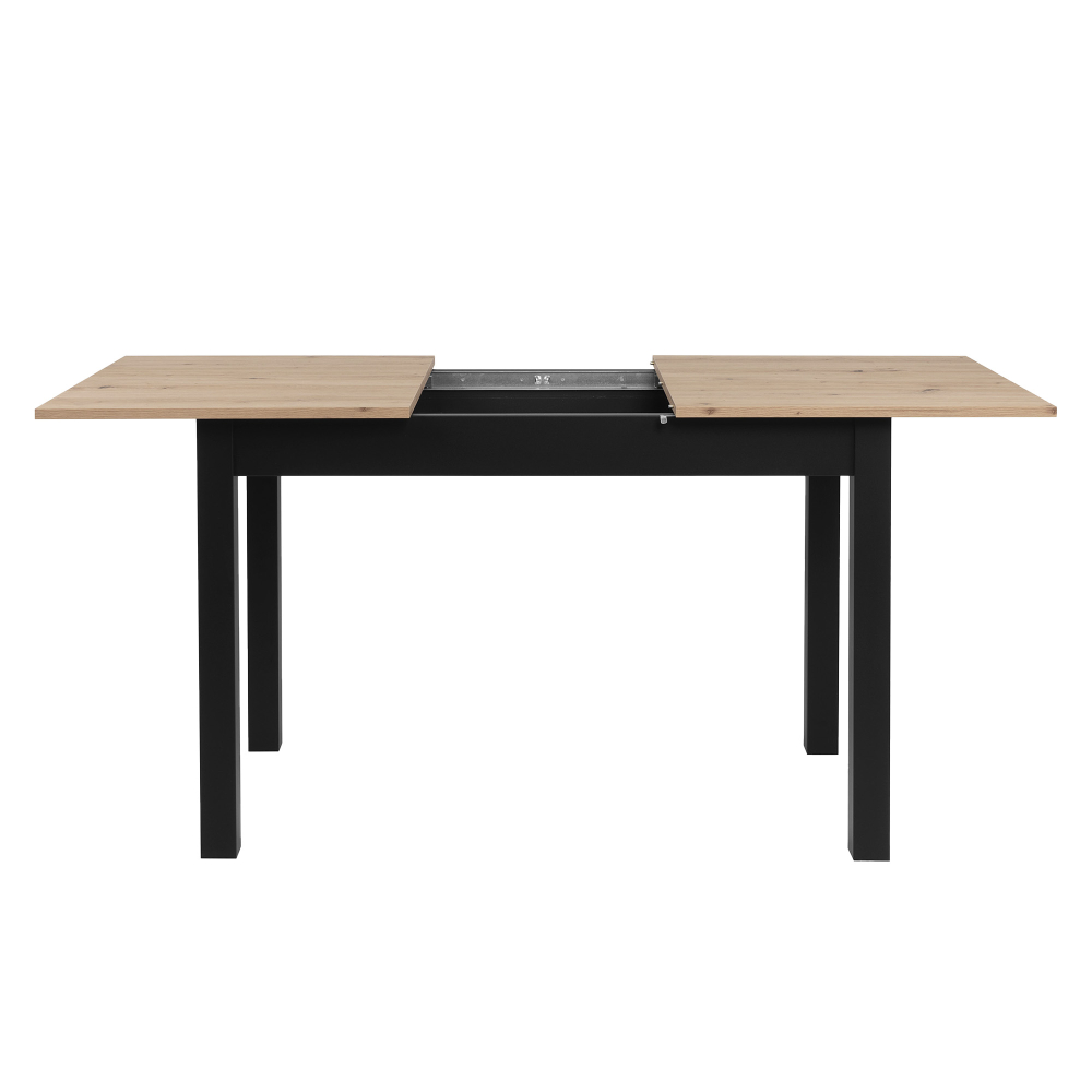 A mesa extensível COBURG com tampo retangular, estrutura em MDF resistente e acabamento disponível em carvalho claro, branco mate ou combinação de tampo em madeira com base preta — uma peça que alia funcionalidade, robustez e um design moderno. O sistema de extensão central é prático e discreto, permitindo aumentar rapidamente a superfície da mesa sempre que necessário.
