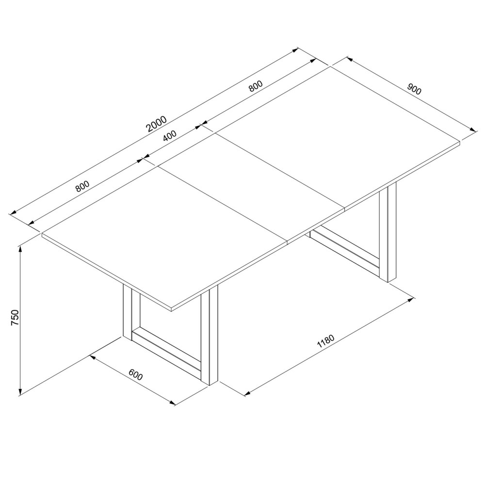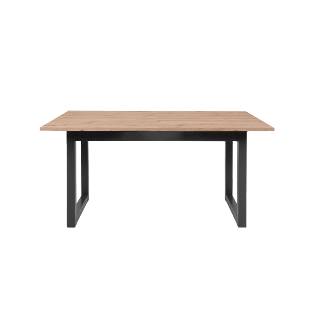 Mesa extensível DENVER com tampo retangular em MDF, estrutura robusta com pés em forma de U e acabamento disponível em branco mate ou madeira natural. Inclui um sistema de extensão central com mecanismo deslizante discreto e fácil de usar, ideal para transformar rapidamente o espaço de refeições. Fechada, acomoda confortavelmente 4 a 6 pessoas; aberta, oferece espaço generoso para até 12 lugares.