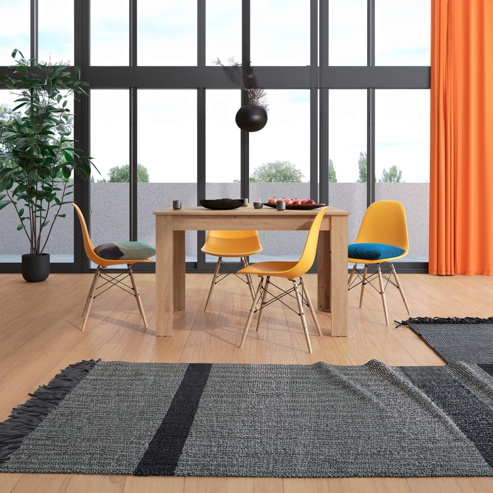 Este modelo de mesa de jantar oferece uma solução prática para refeições diárias ou encontros especiais, proporcionando conforto e organização à sua sala. A construção robusta e o visual clean tornam-na numa peça duradoura, com um estilo que resiste ao tempo e às tendências passageiras.