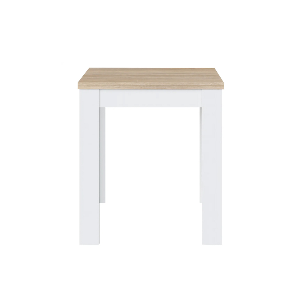 A mesa extensível LIVRE combina estrutura robusta em aglomerado de partículas com acabamento laminado branco mate e tampo em efeito carvalho natural. Equipada com um sistema de extensão com calhas metálicas, permite duplicar rapidamente a superfície útil com um movimento simples e fluido.