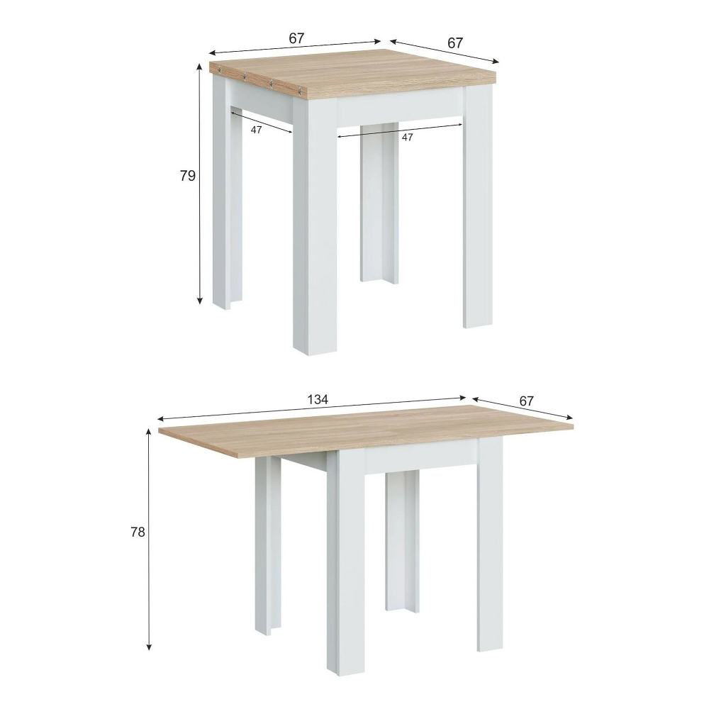 Os encaixes metálicos garantem uma fixação segura do tampo, oferecendo estabilidade e confiança durante a utilização. Fechada, ocupa o mínimo de espaço; aberta, transforma-se numa mesa espaçosa e funcional — ideal para cozinhas compactas ou ambientes versáteis.