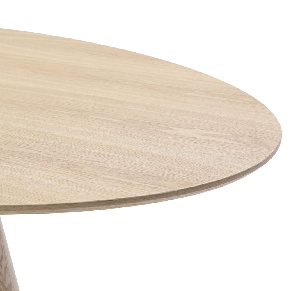 Com estrutura em MDF e revestimento em folha de madeira de freixo, a mesa de jantar ANATA apresenta um design contemporâneo com acabamento natural, que transmite leveza e sofisticação. O tampo redondo promove uma interação mais próxima entre os utilizadores, enquanto a base cónica garante estabilidade e um toque escultural. Versátil e intemporal, esta mesa de jantar adapta-se a diversos estilos decorativos, do moderno ao escandinavo.