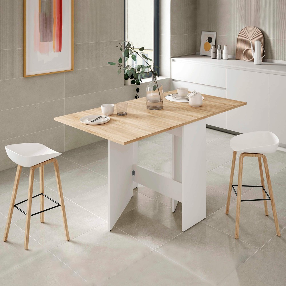 Compacta, funcional e inteligente — a mesa rebatível FLY adapta-se à sua rotina com um design pensado ao detalhe. Com estrutura em aglomerado de partículas, acabamento laminado e tampo em efeito carvalho natural, combina resistência e elegância num só móvel. O sistema articulado permite três posições (aberta, semiaberta ou fechada), oferecendo flexibilidade total em cozinhas pequenas, espaços multifuncionais ou ambientes com área reduzida.