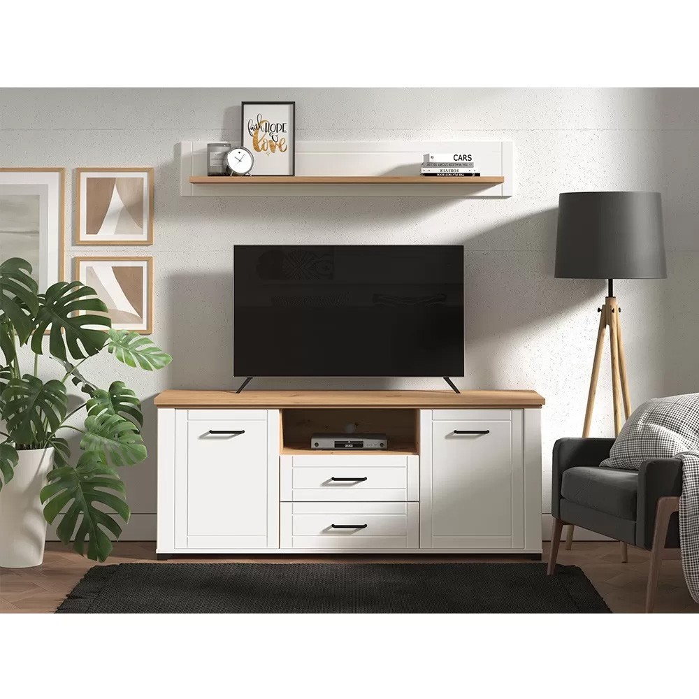 Móvel TV alto VALENCIA combina arrumação prática, estilo acolhedor e organização inteligente.