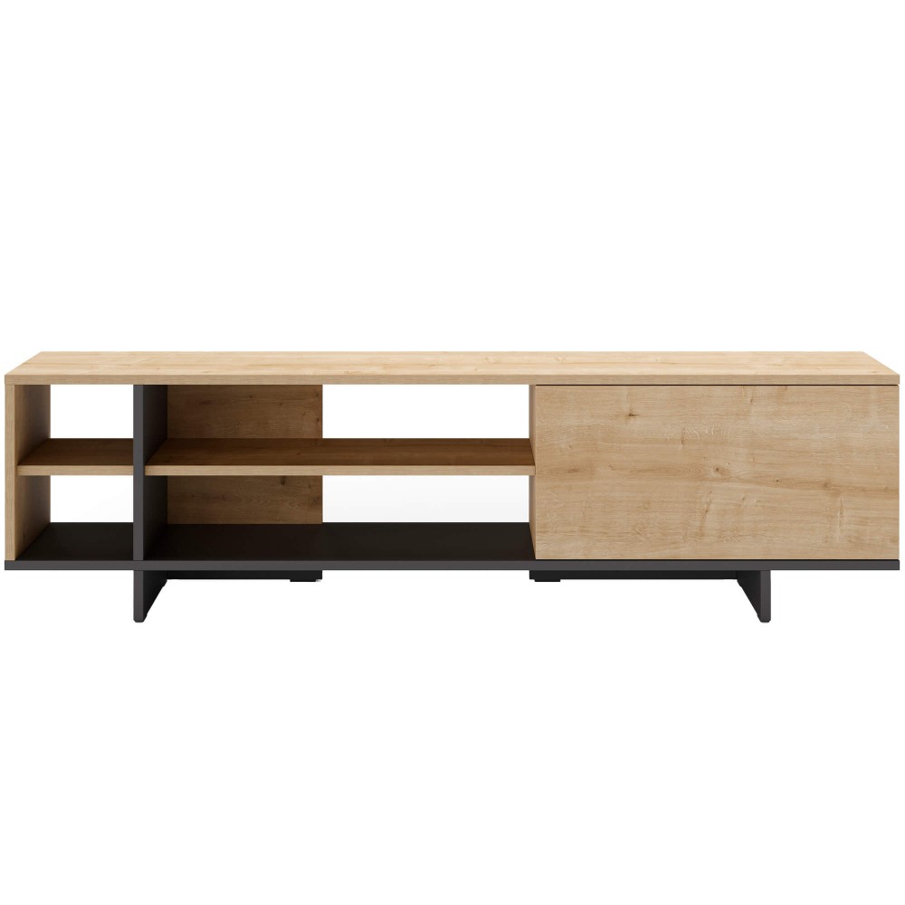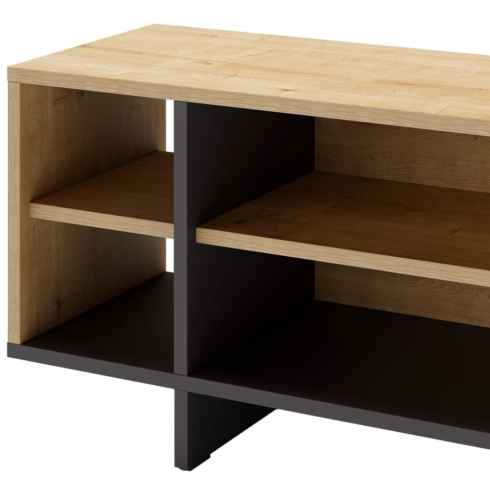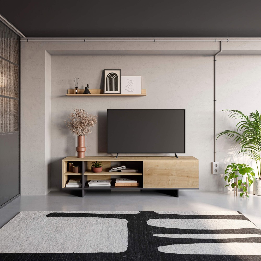 Apresente elegância e funcionalidade na sua sala de estar com este moderno móvel de TV. Fabricado em carvalho artesanal e em preto, esta peça combina durabilidade e estilo.