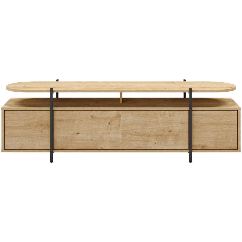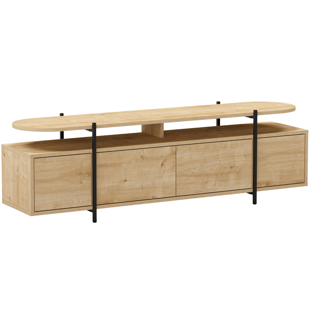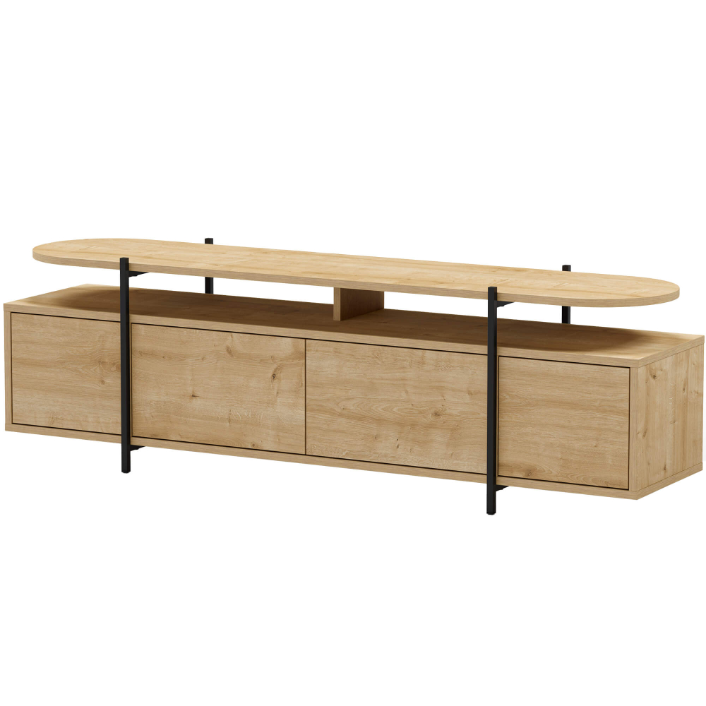 O móvel dispõe de quatros nichos internos de arrumação, ideais para organizar equipamentos eletrónicos, livros ou outros acessórios essenciais. As quatro portas ajudam a manter o espaço organizado, escondendo objetos e oferecendo um visual limpo e elegante. O tampo superior suporta até 30 kg, sendo perfeito para televisores de grandes dimensões, decorações ou outros acessórios.