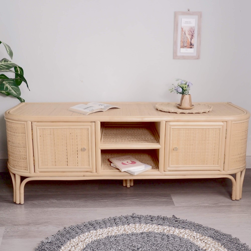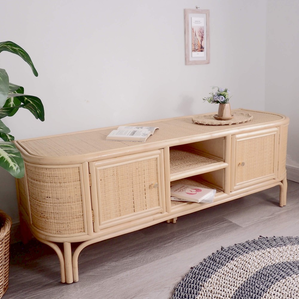 Móvel TV INDO, em rattan, uma peça natural que combina arrumação prática e charme artesanal.