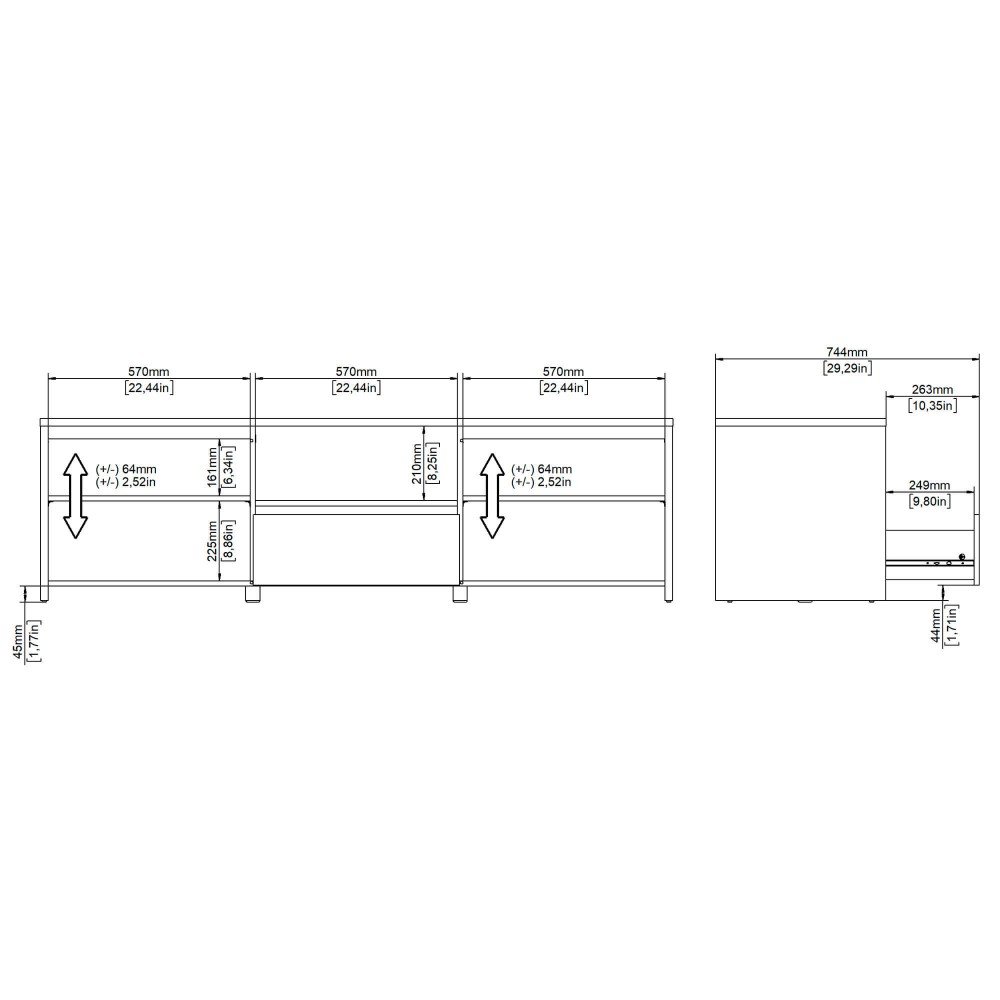 O móvel TV NEXT combina linhas direitas com uma estrutura prática composta por duas portas, uma gaveta central e um nicho aberto. Ideal para televisores de grandes dimensões, proporciona arrumação ampla e discreta, com prateleiras interiores ajustáveis.