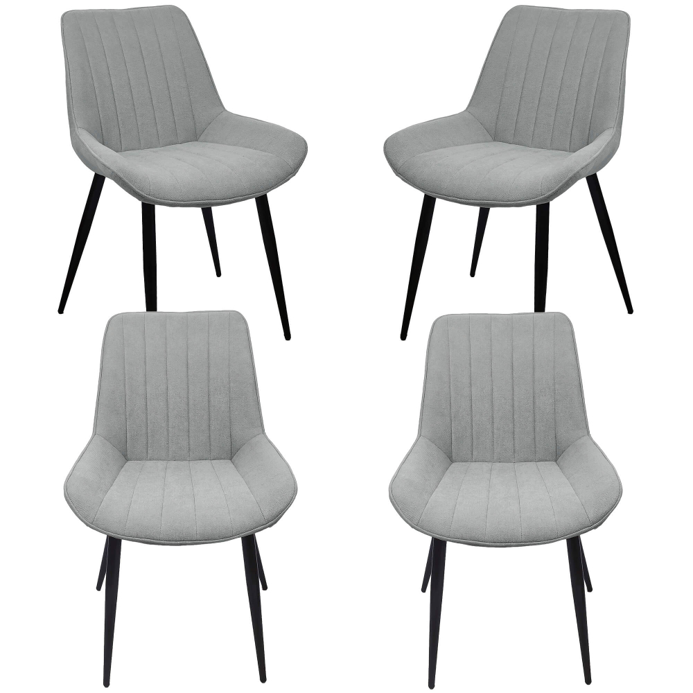 O pack 4 cadeiras MANGA combina um assento estofado em tecido resistente com pernas metálicas de acabamento a pó preto. A pintura a pó preta, utilizando o processo eletrostático, oferece diversas vantagens, incluindo alta durabilidade, resistência a impactos e corrosão, além de um acabamento estético superior e ser uma opção mais ecológica. O seu design minimalista encaixa em qualquer ambiente — da sala de jantar ao home office.
