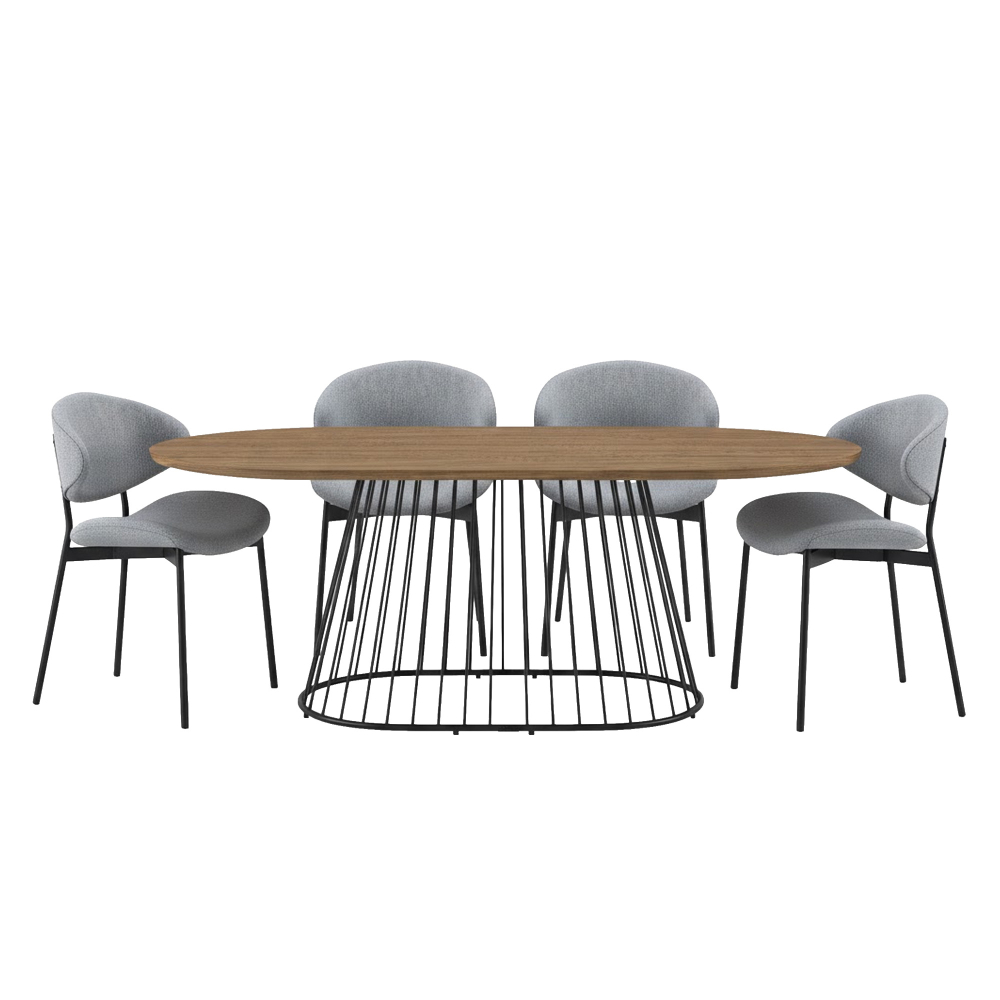 Este conjunto foi pensado para oferecer uma experiência visual e funcional completa. A mesa oval favorece a circulação e o conforto durante as refeições, ao mesmo tempo que elimina ângulos agressivos, criando um ambiente fluido e acolhedor. As cadeiras proporcionam apoio ergonómico e bem-estar prolongado, ideais para convívios demorados. A estética neutra com apontamentos industriais encaixa perfeitamente em ambientes contemporâneos, escandinavos ou minimalistas. Fácil de limpar e de manter, o Pack mesa ODEON + 4 Cadeiras EMMA é a escolha ideal para quem procura renovar a sala com um toque de elegância e conforto duradouro.
