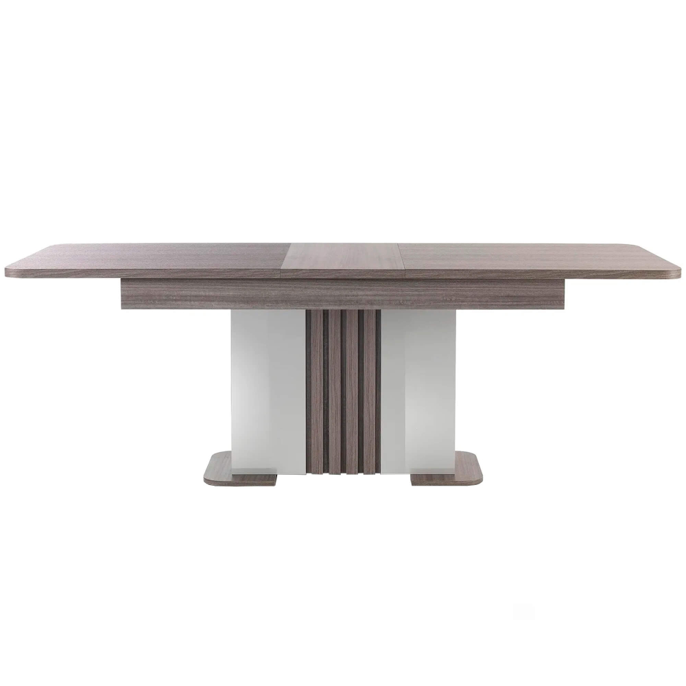 Transforme a sua sala de jantar num ambiente moderno e sofisticado com o pack de sala de jantar PESARO, composto por uma mesa extensível, um móvel de TV e um aparador, todos com iluminação LED. Esta linha combina funcionalidade e elegância com acabamentos premium e design contemporâneo.