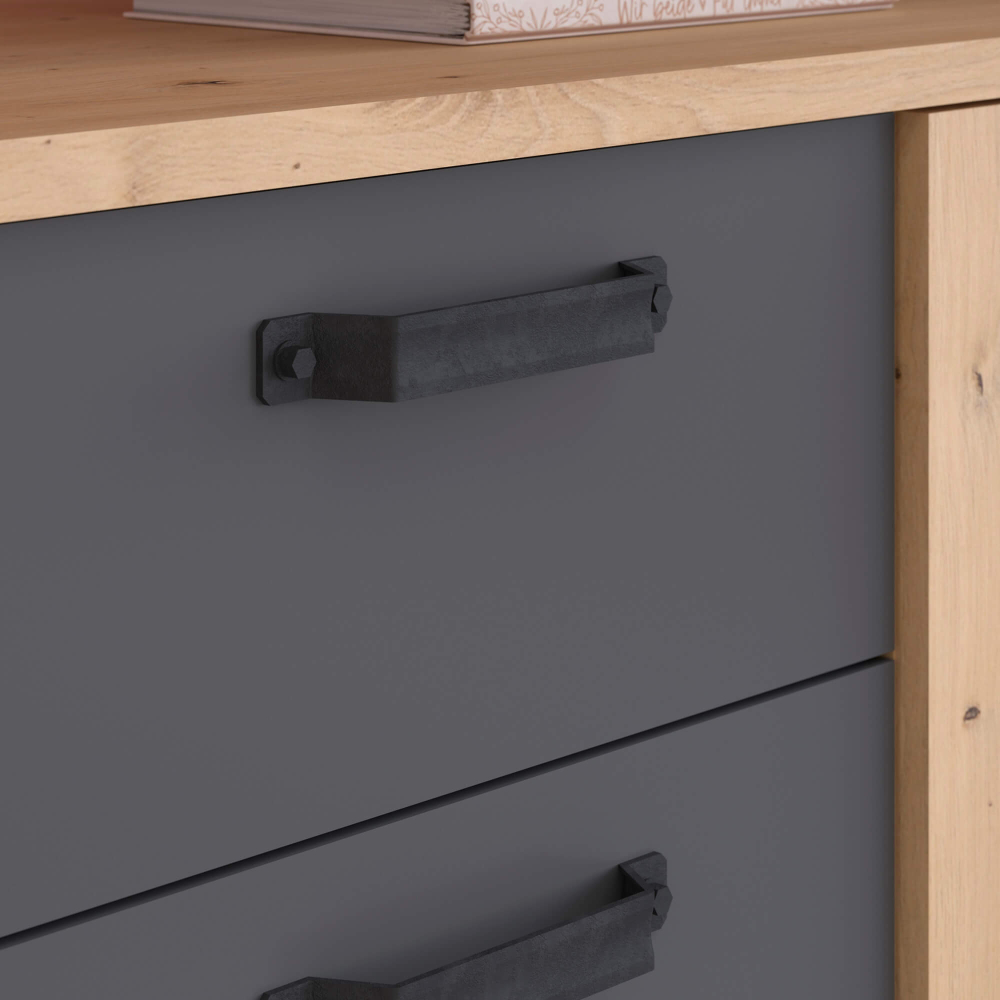 Pack TRAVIS: mesa e aparador com estilo industrial e acabamentos de presença marcante.