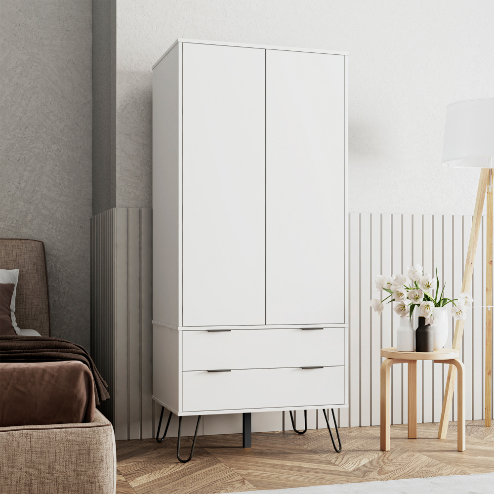 Transforme o seu quarto com o roupeiro CASSIE com 2 portas e 2 gavetas e desfrute de um ambiente mais organizado e harmonioso.