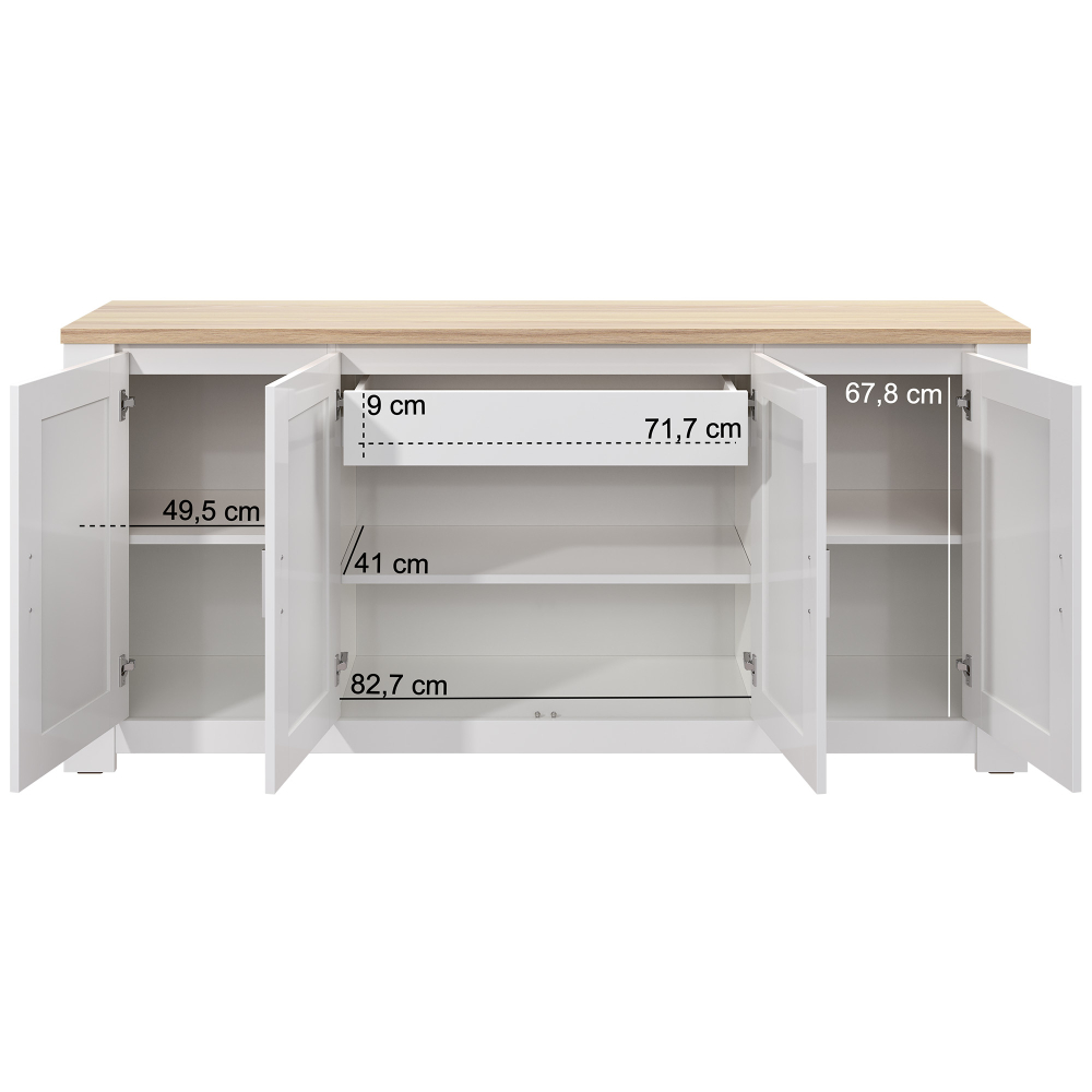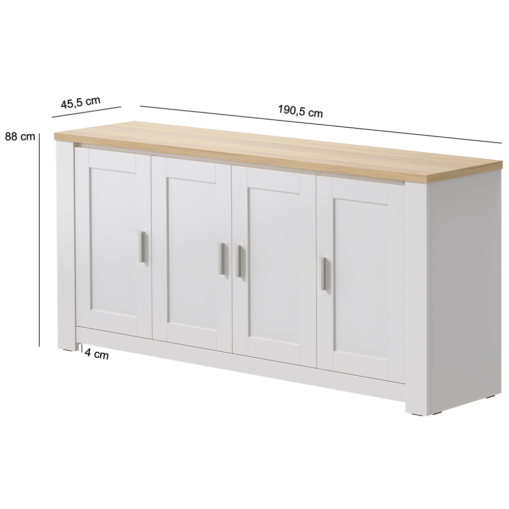 Aparador FLORENÇA alia elegância moderna e arrumação prática com acabamento branco e carvalho.