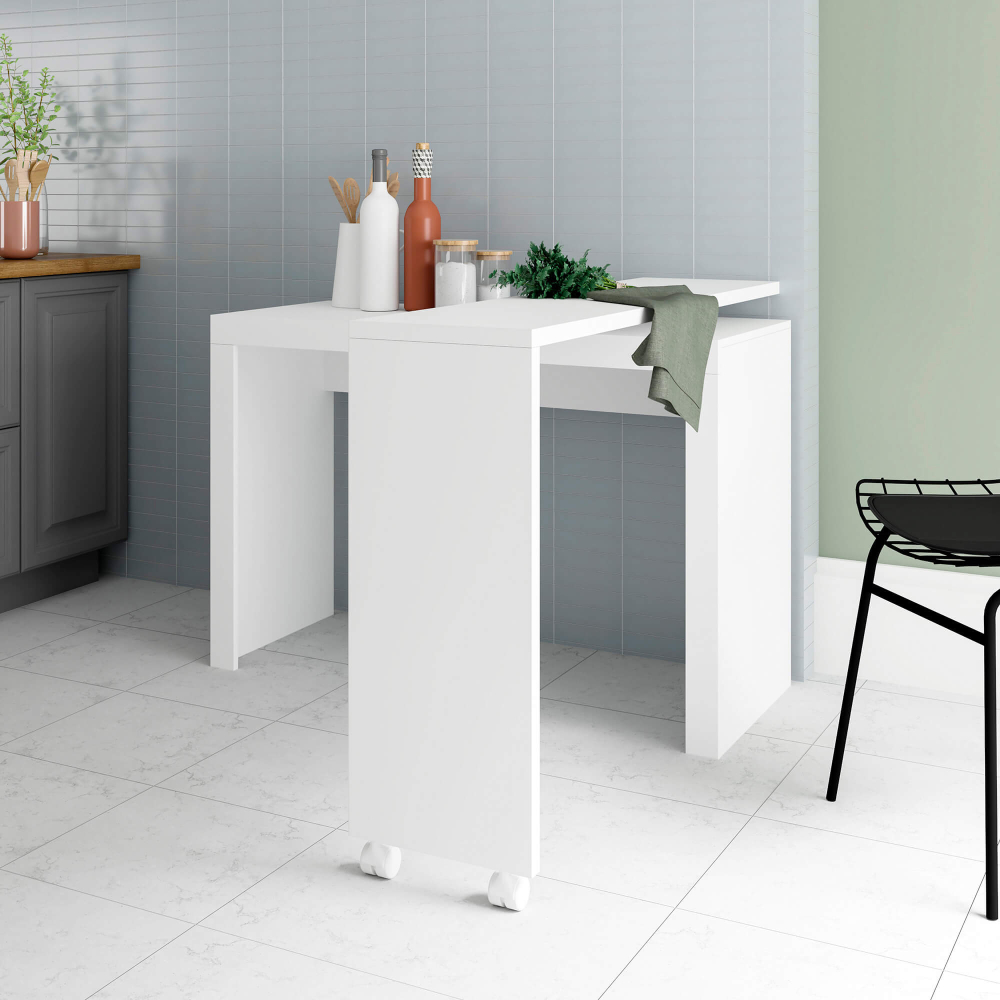 Equipada com rodas discretas e movimento suave, a estrutura móvel desliza facilmente para adaptar-se ao espaço de trabalho ou estudo. O acabamento uniforme em branco mate cria um aspeto leve e contemporâneo, integrando-se com facilidade em diferentes estilos de decoração.