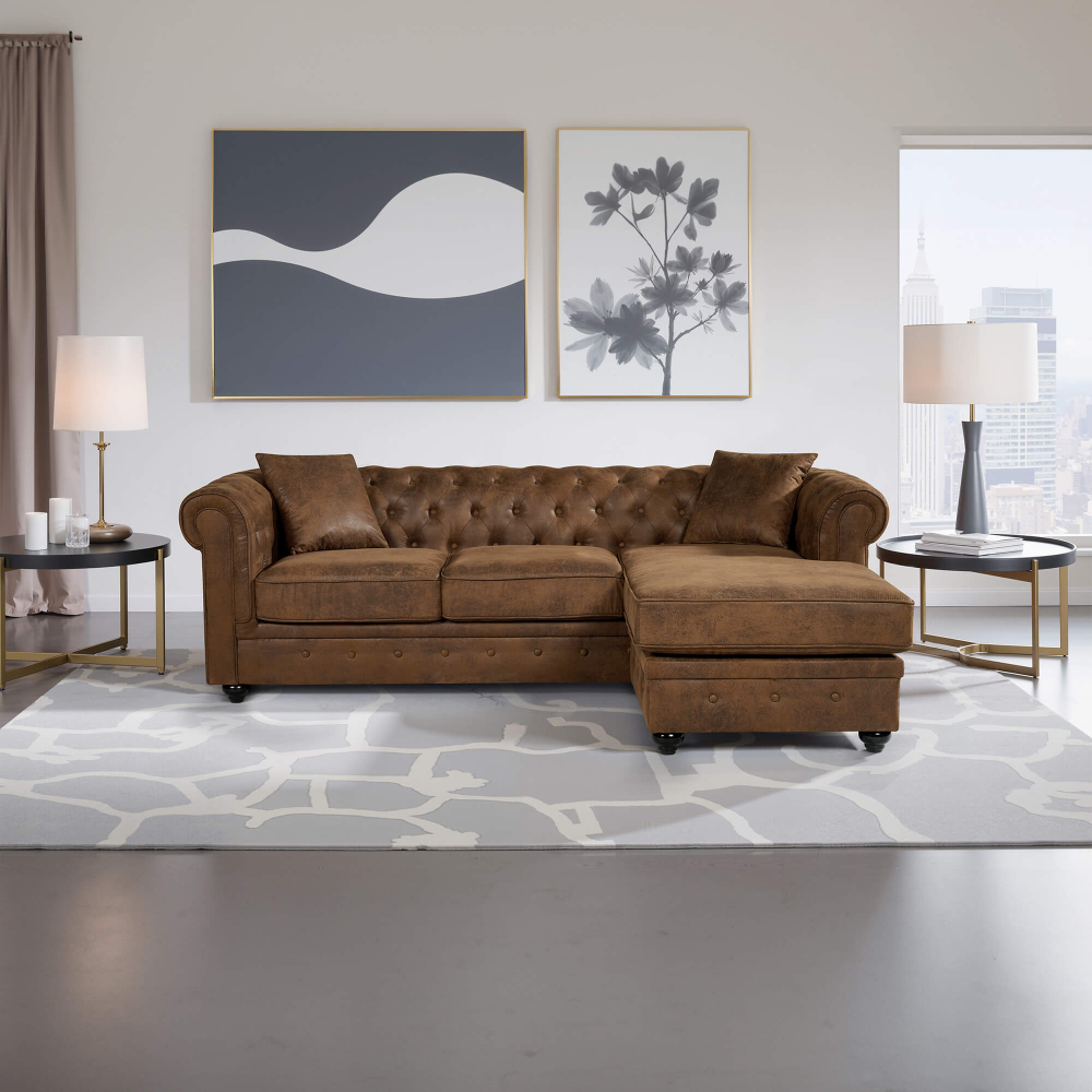 Transforme a sua sala num espaço requintado e confortável com o sofá chaise longue reversível CHESTER.
