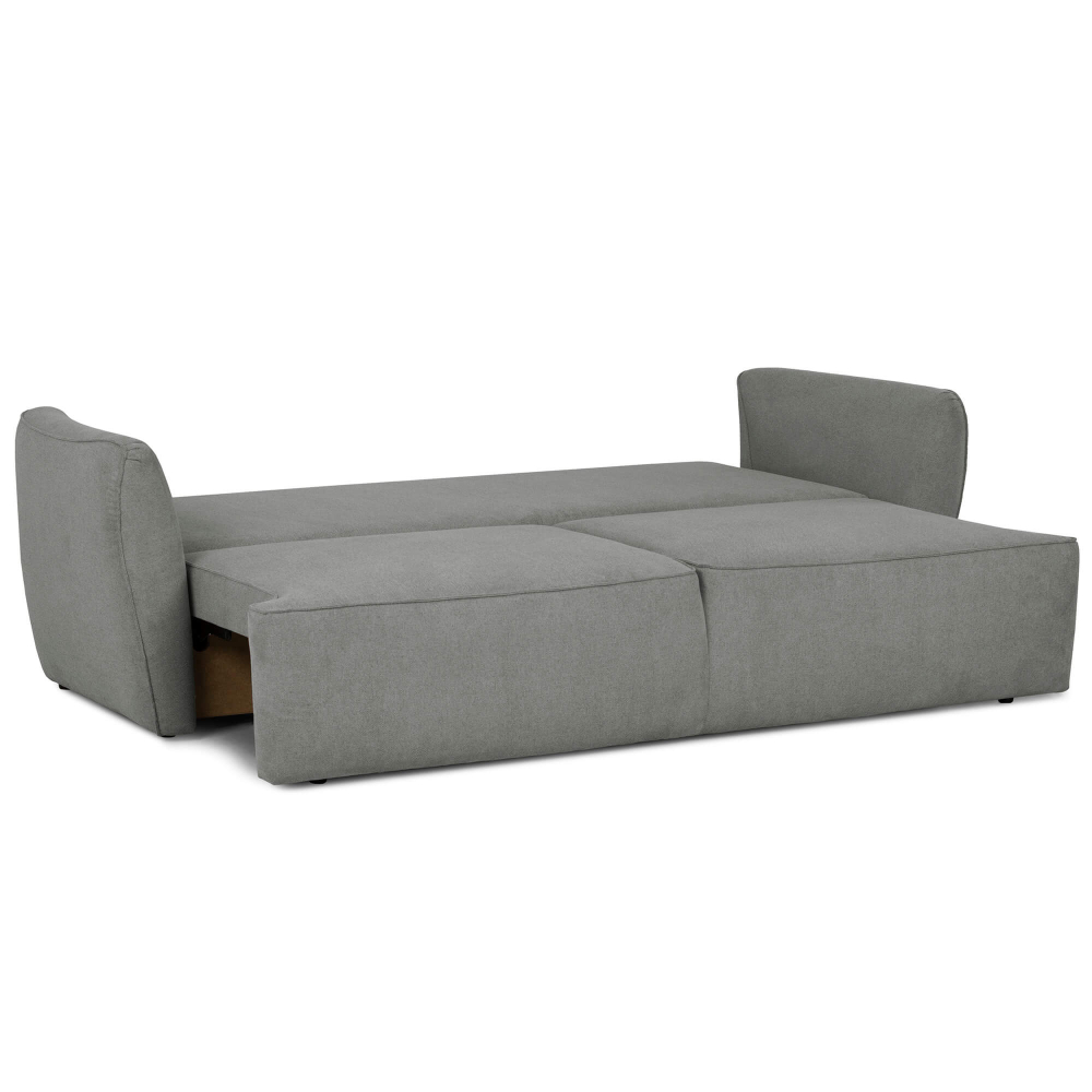 Entre os principais destaques, o sofá 3 lugares MERLIN com cama oferece estrutura com certificação FSC, enchimento em espuma de 28 kg/m³ no assento e uma combinação de fibras e flocos nas costas para um apoio equilibrado. O revestimento em tecido é suave e elegante, enquanto o sistema de abertura simples permite convertê-lo numa cama de 153,5 x 193 cm em segundos. Com capacidade até 300 kg, este sofá 3 lugares inclui ainda um baú de arrumação integrado — perfeito para guardar roupa de cama, mantas ou almofadas extra. As almofadas são removíveis para facilitar a limpeza, mesmo que as capas não sejam laváveis.