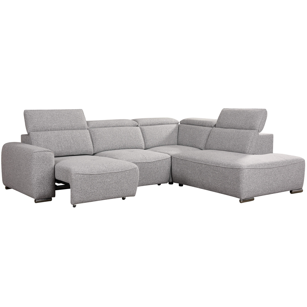 Sofá de canto LORD relax elétrico com assentos ajustáveis, encostos de cabeça reclináveis e cama.