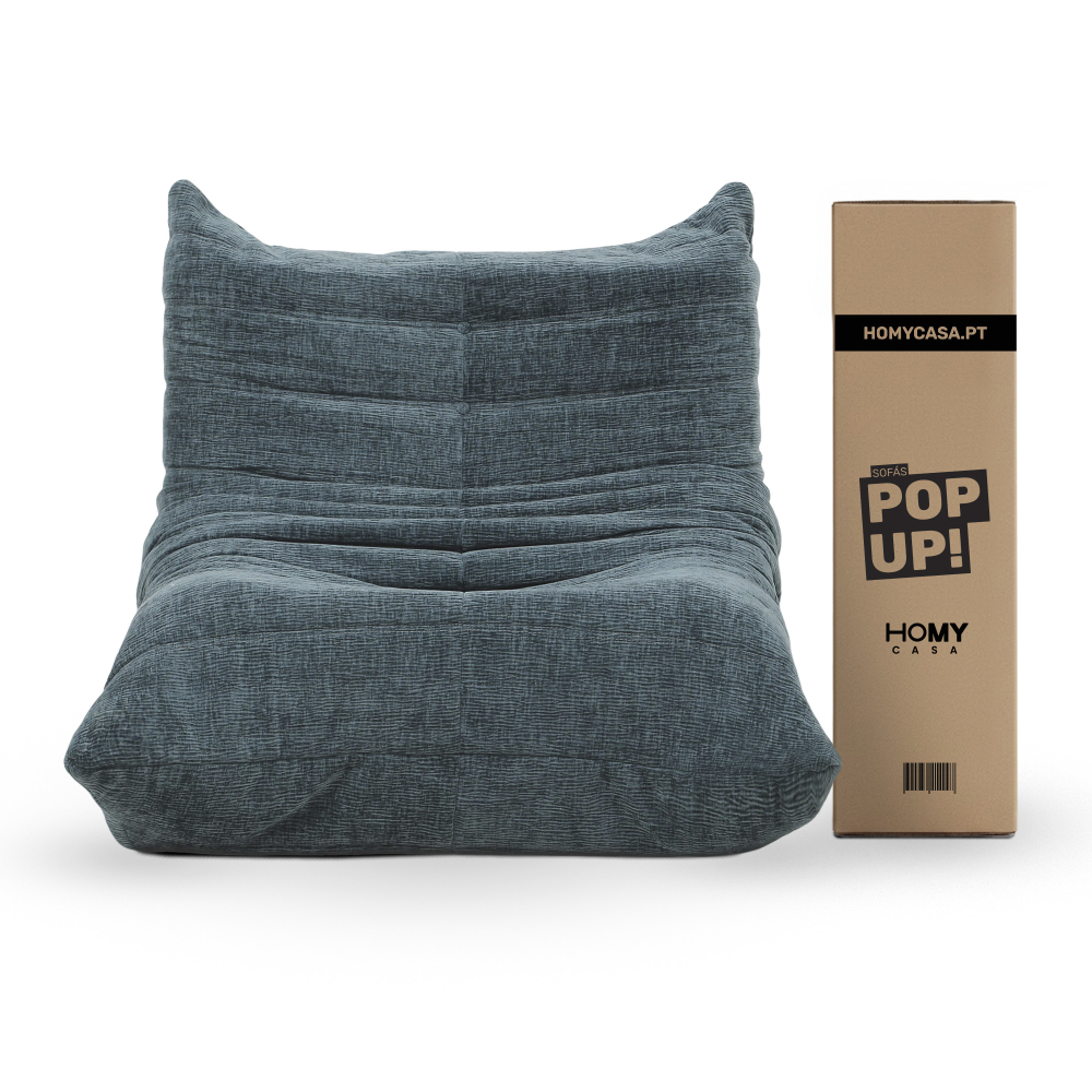 Sofás POP UP! Cadeirão FERDI entregue comprimido e embalado a vácuo. Muito prático e confortável.